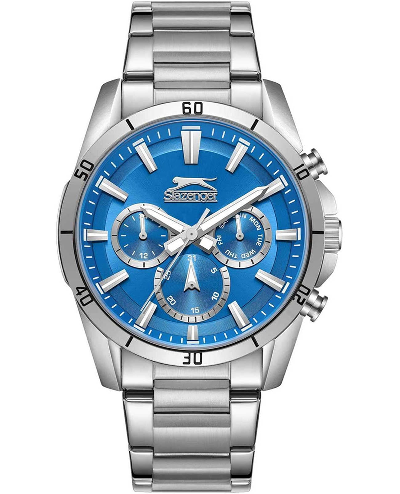 Мужские кварцевые часы Slazenger SL.09.2332.2.05 — это выразительный и функциональный аксессуар, сочетающий стиль, прочность и насыщенную комплектацию. Корпус и браслет выполнены из суперметалла. Изысканный циферблат защищён минеральным стекломМинеральное стеклоМинеральное стекло представляет собой искусственно выращенный минерал кварца. Такое стекло отличается особой устойчивостью к повреждениям и царапинам. Уступает по некоторым качествам сапфировому стеклу. и дополнен вынесенными малыми циферблатами для индикации дня недели, даты и времени в 24-часовом формате. Стрелки и метки оснащены люминесцентным покрытиемЛюминесцентное покрытиеПозволяет считывать показания времени в темноте. Производители наносят на стрелки, часовые индексы, безель или поверхность циферблата светонакопительный состав, дающий холодное свечение., обеспечивающим хорошую читаемость в темноте. Браслет из суперметалла фиксируется на раскладной застёжкеРаскладная застёжкаТакой тип застёжки используется только на браслетах из металла. Она никогда не раскрывается полностью, происходит разделение на 2 и более частей. Раскладывающая застёжка снизит вероятность потери часов к минимуму., обеспечивая удобство и безопасность ношения. Водонепроницаемость 50 м позволяет использовать часы в повседневных условиях, защищая от случайных брызг и капель дождя. Модель подчёркивает индивидуальность владельца и идеально подходит как для повседневного, так и для делового образа.