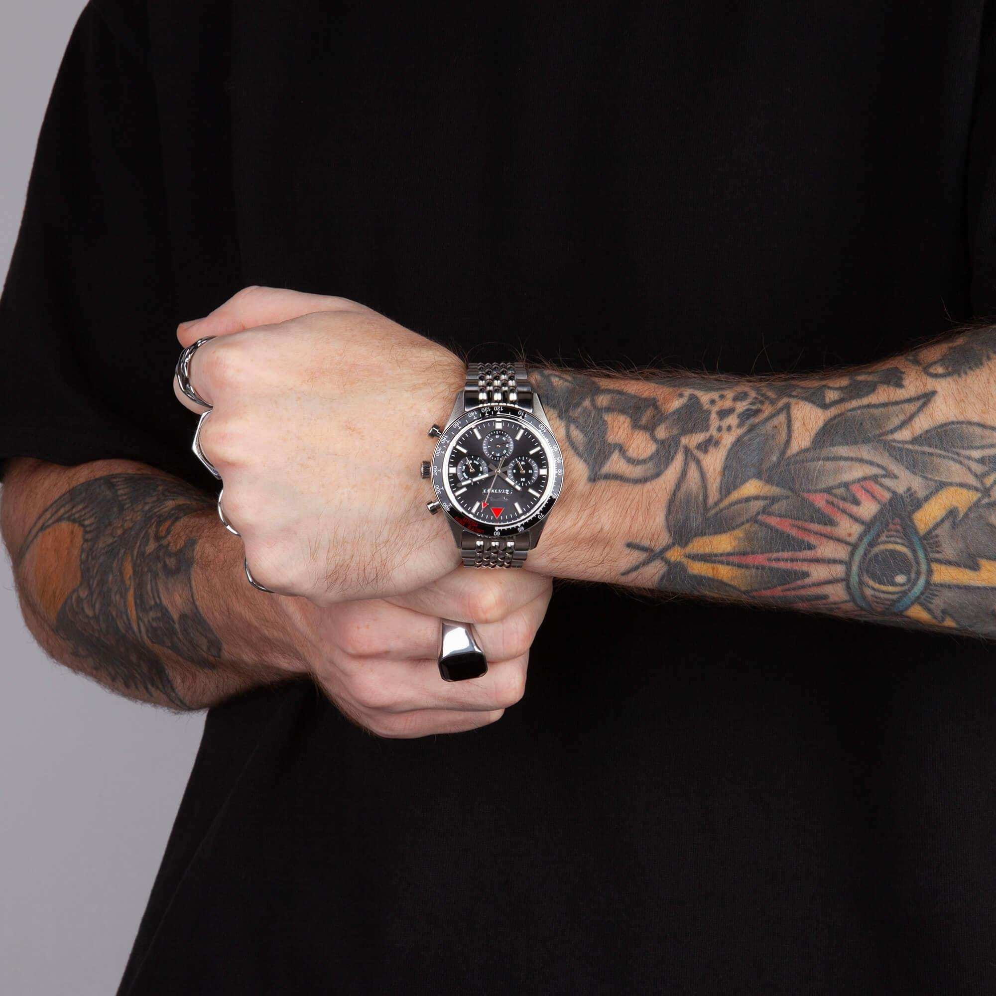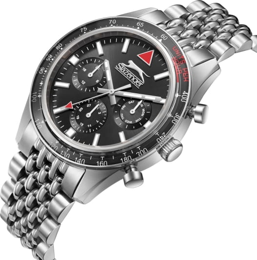 Мужские кварцевые часы Slazenger SL.09.2360.2.01 – идеальное сочетание классического дизайна и современных технологий, созданное для уверенных в себе мужчин. Корпус выполнен из суперметалла серебристого цвета, диаметром 43 мм и толщиной 12 мм, подчёркивает надежность модели и делает их идеальным аксессуаром для любой ситуации – будь то деловая встреча или повседневные выходы. Циферблат надёжно защищён минеральным стекломМинеральное стеклоМинеральное стекло представляет собой искусственно выращенный минерал кварца. Такое стекло отличается особой устойчивостью к повреждениям и царапинам. Уступает по некоторым качествам сапфировому стеклу., которое устойчиво к механическим повреждениям и сохраняет кристальную прозрачность. Неподвижный безельБезельВнешний ободок, закрепляющий стекло. В спортивных часах так называется поворотное кольцо с делениями на циферблате, выполняет роль таймера – замеряет отрезки времени на шкале. Неподвижный безель – элемент декора. Однонаправленно вращающийся безель на дайверских часах позволяет фиксировать моменты погружения и выныривания на поверхность. с IP-покрытиемIP-покрытиеМетод ионного напыления. Демонстрирует повышенную устойчивость к истиранию, окислению и химическим веществам. Под воздействием высокого давления и температуры около 1500°C молекулы металла надёжно соединяются с частицами корпуса часов. черного цвета. Стальной браслет на раскладной застёжкеРаскладная застёжкаТакой тип застёжки используется только на браслетах из металла. Она никогда не раскрывается полностью, происходит разделение на 2 и более частей. Раскладывающая застёжка снизит вероятность потери часов к минимуму. удобно облегает запястье, обеспечивая надёжность и комфорт в повседневном ношении. Стрелки и метки покрыты люминесцентным покрытиемЛюминесцентное покрытиеПозволяет считывать показания времени в темноте. Производители наносят на стрелки, часовые индексы, безель или поверхность циферблата светонакопительный состав, дающий холодное свечение., обеспечивающим отличную читаемость в темноте. Эти часы станут не просто аксессуаром, а надежным спутником в любой ситуации, подчеркивая ваш безупречный вкус и деловой стиль. Вынесенный циферблат с 24-х часовым указателем времени и функция тахиметраТахиметрРазмеченная шкала, располагается на ободке или безеле часов. Тахиметр позволяет рассчитать скорость на определённом участке пути, расстояние измеряется в километрах или милях.. Водозащита 50 метров позволит защитить корпус от случайных брызг или капель дождя.
