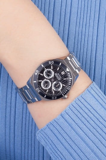 Женские кварцевые часы Slazenger SL.09.2371.2.01 – это сочетание элегантности, современного стиля и надёжности. Изящный корпус из суперметалла серебристого цвета, диаметром 38.5 мм и толщиной 11 мм, подчёркивает утончённость модели и делает их идеальным аксессуаром для любой ситуации – будь то деловая встреча, романтический вечер или повседневные выходы. Циферблат надёжно защищён минеральным стекломМинеральное стеклоМинеральное стекло представляет собой искусственно выращенный минерал кварца. Такое стекло отличается особой устойчивостью к повреждениям и царапинам. Уступает по некоторым качествам сапфировому стеклу., которое устойчиво к механическим повреждениям и сохраняет кристальную прозрачность. БезельБезельВнешний ободок, закрепляющий стекло. В спортивных часах так называется поворотное кольцо с делениями на циферблате, выполняет роль таймера – замеряет отрезки времени на шкале. Неподвижный безель – элемент декора. Однонаправленно вращающийся безель на дайверских часах позволяет фиксировать моменты погружения и выныривания на поверхность. с IP-покрытиемIP-покрытиеМетод ионного напыления. Демонстрирует повышенную устойчивость к истиранию, окислению и химическим веществам. Под воздействием высокого давления и температуры около 1500°C молекулы металла надёжно соединяются с частицами корпуса часов. черного цвета. Браслет из суперметалла удобно облегает запястье и фиксируется с помощью раскладной застёжкиРаскладная застёжкаТакой тип застёжки используется только на браслетах из металла. Она никогда не раскрывается полностью, происходит разделение на 2 и более частей. Раскладывающая застёжка снизит вероятность потери часов к минимуму., обеспечивая надёжность и комфорт в повседневном ношении. Утончённый стиль, внимание к деталям и практичность делают эту модель идеальным выбором для современных женщин, ценящих эстетику и функциональность. Стрелки и метки покрыты люминесцентным покрытиемЛюминесцентное покрытиеПозволяет считывать показания времени в темноте. Производители наносят на стрелки, часовые индексы, безель или поверхность циферблата светонакопительный состав, дающий холодное свечение., обеспечивающим отличную читаемость в темноте. Вынесенный циферблат с 24-х часовым указателем времени украшен фианитами. Водозащита до 30 метров позволит защитить корпус от случайных брызг или капель дождя.