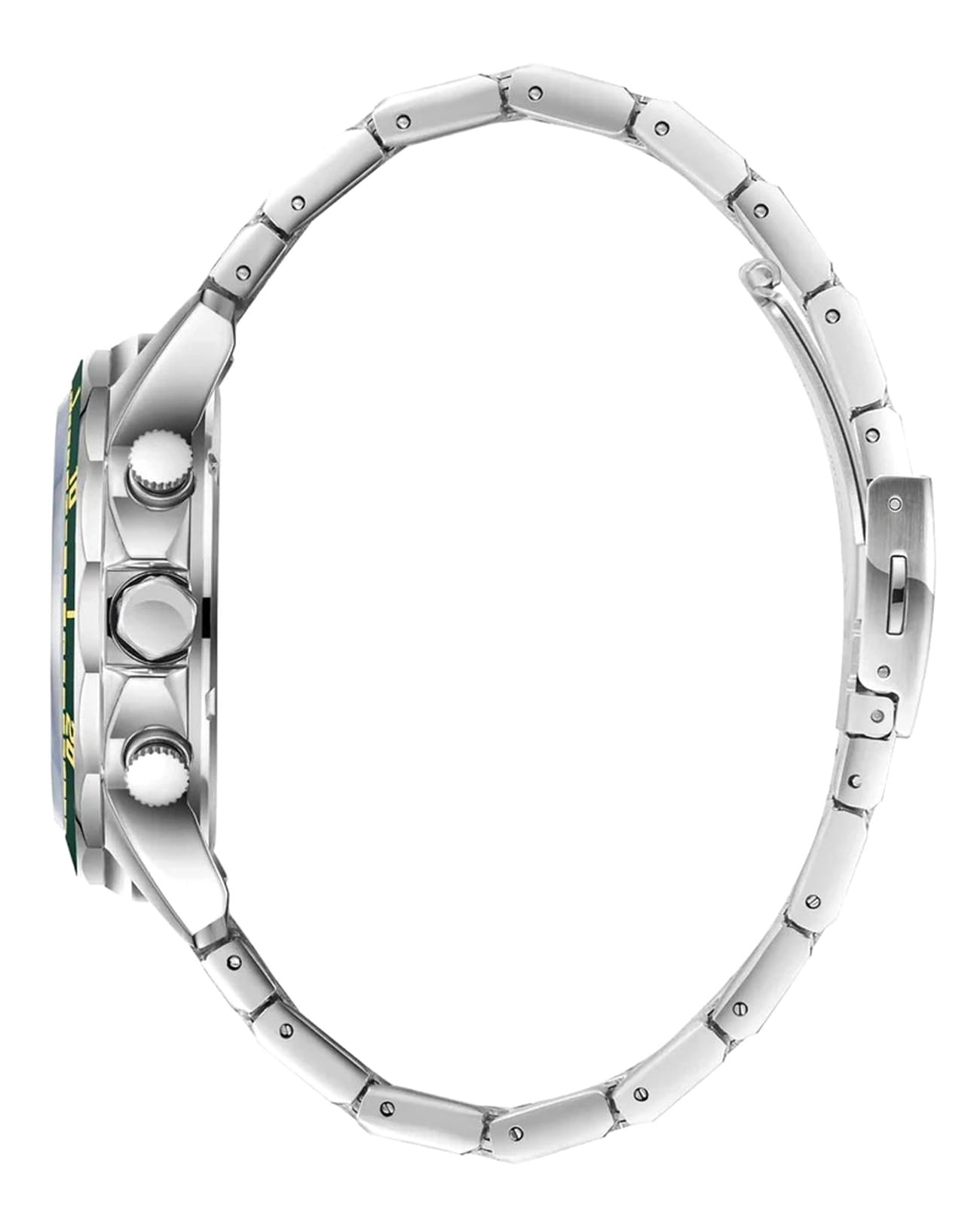 Мужские кварцевые часы Slazenger — это выразительный и функциональный аксессуар. Корпус диаметром 41,5 мм и толщиной 13 мм выполнен из суперметалла. Циферблат зелёного цвета оформлен индексами и стрелками. Циферблат защищён минеральным стекломМинеральное стеклоМинеральное стекло представляет собой искусственно выращенный минерал кварца. Такое стекло отличается особой устойчивостью к повреждениям и царапинам. Уступает по некоторым качествам сапфировому стеклу.. Механизм — кварцевый. Часы оснащены индикацией дня недели, даты и 12/24-часового формата времени. Стрелки и метки с люминесцентным покрытиемЛюминесцентное покрытиеПозволяет считывать показания времени в темноте. Производители наносят на стрелки, часовые индексы, безель или поверхность циферблата светонакопительный состав, дающий холодное свечение., обеспечивающим хорошую читаемость в темноте. Часы оснащены браслетом из суперметалла с раскладной застёжкойРаскладная застёжкаТакой тип застёжки используется только на браслетах из металла. Она никогда не раскрывается полностью, происходит разделение на 2 и более частей. Раскладывающая застёжка снизит вероятность потери часов к минимуму.. Водонепроницаемость 100 м позволяет использовать часы для плавания и повседневного ношения. Гарантия — 12 месяцев. Идеальный выбор для тех, кто ценит стиль, функциональность и качество.