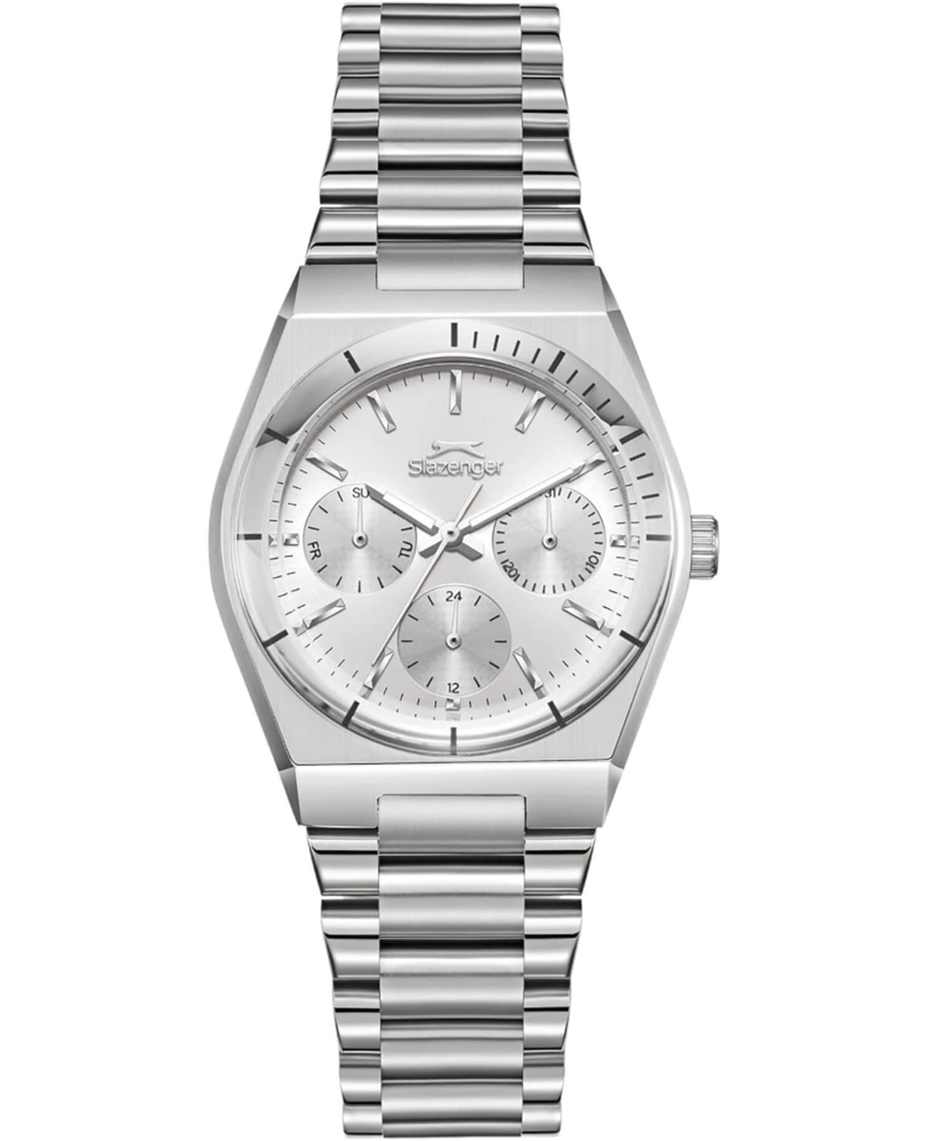Женские кварцевые часы Slazenger — это элегантный и функциональный аксессуар. Корпус диаметром 33 мм и толщиной 10,5 мм выполнен из суперметалла. Циферблат серебристого цвета оформлен индексами и стрелками. Циферблат защищён минеральным стекломМинеральное стеклоМинеральное стекло представляет собой искусственно выращенный минерал кварца. Такое стекло отличается особой устойчивостью к повреждениям и царапинам. Уступает по некоторым качествам сапфировому стеклу.. Механизм — кварцевый. Часы оснащены индикацией дня недели, даты и 12/24-часового формата времени. Стрелки с люминесцентным покрытиемЛюминесцентное покрытиеПозволяет считывать показания времени в темноте. Производители наносят на стрелки, часовые индексы, безель или поверхность циферблата светонакопительный состав, дающий холодное свечение., обеспечивающим хорошую читаемость в темноте. Часы оснащены браслетом из суперметалла с раскладной застёжкойРаскладная застёжкаТакой тип застёжки используется только на браслетах из металла. Она никогда не раскрывается полностью, происходит разделение на 2 и более частей. Раскладывающая застёжка снизит вероятность потери часов к минимуму.. Водонепроницаемость 50 м позволяет использовать часы в повседневных условиях. Гарантия — 12 месяцев. Идеальный выбор для тех, кто ценит стиль, функциональность и качество.