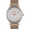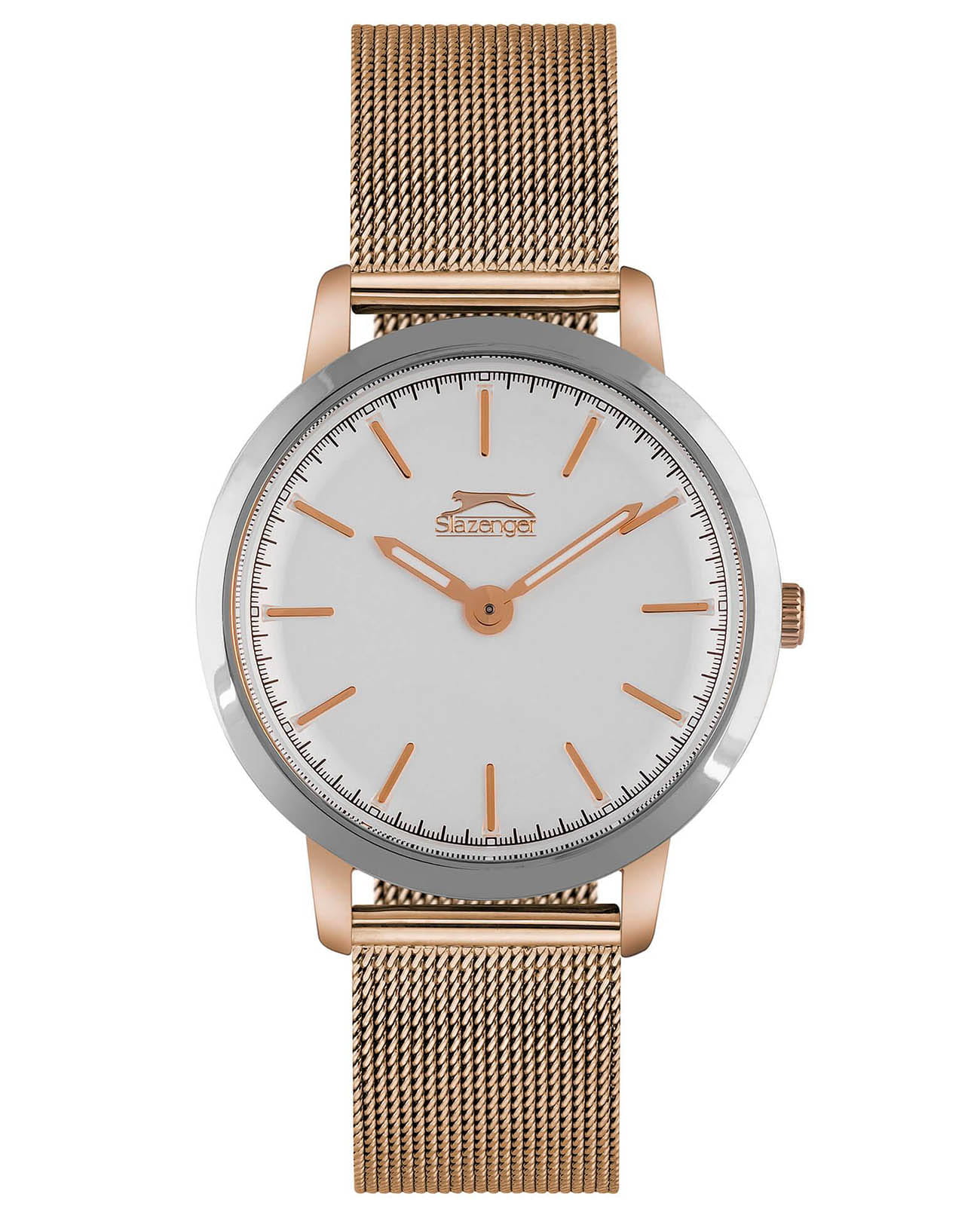 Женские кварцевые часы Slazenger — это элегантный аксессуар с браслетом миланского плетения. Корпус диаметром 34,5 мм выполнен из суперметалла с IP-покрытиемIP-покрытиеМетод ионного напыления. Демонстрирует повышенную устойчивость к истиранию, окислению и химическим веществам. Под воздействием высокого давления и температуры около 1500°C молекулы металла надёжно соединяются с частицами корпуса часов.. Циферблат серебристого цвета оформлен индексами и стрелками. Стрелки с люминесцентным покрытиемЛюминесцентное покрытиеПозволяет считывать показания времени в темноте. Производители наносят на стрелки, часовые индексы, безель или поверхность циферблата светонакопительный состав, дающий холодное свечение., обеспечивающим читаемость в темноте. Циферблат защищён минеральным стекломМинеральное стеклоМинеральное стекло представляет собой искусственно выращенный минерал кварца. Такое стекло отличается особой устойчивостью к повреждениям и царапинам. Уступает по некоторым качествам сапфировому стеклу.. Кварцевый механизм Y120. Часы оснащены браслетом из суперметалла на раскладной застёжкеРаскладная застёжкаТакой тип застёжки используется только на браслетах из металла. Она никогда не раскрывается полностью, происходит разделение на 2 и более частей. Раскладывающая застёжка снизит вероятность потери часов к минимуму.. Водонепроницаемость 50 м позволяет использовать часы для плавания и повседневного ношения. Идеальный выбор для тех, кто ценит стиль и качество.