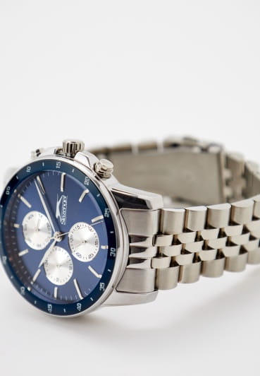 Мужские часы Slazenger SL.09.6524.2.03 — это стильный и надежный аксессуар, который подчеркивает индивидуальность своего владельца. Изысканный корпус и браслет выполнены из прочного суперметалла. Циферблат надежно защищен минеральным стекломМинеральное стеклоМинеральное стекло представляет собой искусственно выращенный минерал кварца. Такое стекло отличается особой устойчивостью к повреждениям и царапинам. Уступает по некоторым качествам сапфировому стеклу., устойчивым к царапинам и механическим повреждениям. Модель оснащена кварцевым механизмом, что гарантирует высокую точность хода. На отдельные циферблаты вынесены указатели 24-часового времени, что делает использование часов особенно удобным в повседневной жизни. Браслет с раскладной застёжкойРаскладная застёжкаТакой тип застёжки используется только на браслетах из металла. Она никогда не раскрывается полностью, происходит разделение на 2 и более частей. Раскладывающая застёжка снизит вероятность потери часов к минимуму., обеспечивающей комфортную посадку. Водозащита 5 АТМ позволяет не беспокоиться о случайных брызгах или дожде. Диаметр корпуса составляет 45 мм, толщина — 12 мм, что обеспечивает комфортное ношение на запястье. Часы станут отличным выбором для повседневного использования или дополнения к деловому образу, а также послужат отличным подарком на любой праздник.
