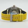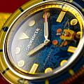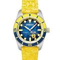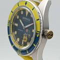 Мужские механические часы с автоподзаводом Spinnaker — это стильный и функциональный аксессуар. Корпус диаметром 43 мм и толщиной 13 мм выполнен из нержавеющей стали. БезельБезельВнешний ободок, закрепляющий стекло. В спортивных часах так называется поворотное кольцо с делениями на циферблате, выполняет роль таймера – замеряет отрезки времени на шкале. Неподвижный безель – элемент декора. Однонаправленно вращающийся безель на дайверских часах позволяет фиксировать моменты погружения и выныривания на поверхность. с IP-покрытиемIP-покрытиеМетод ионного напыления. Демонстрирует повышенную устойчивость к истиранию, окислению и химическим веществам. Под воздействием высокого давления и температуры около 1500°C молекулы металла надёжно соединяются с частицами корпуса часов.. Циферблат синего цвета оформлен штрихами, точками и стрелками. Присутствует малая секундная стрелка. Стрелки и метки с люминесцентным покрытиемЛюминесцентное покрытиеПозволяет считывать показания времени в темноте. Производители наносят на стрелки, часовые индексы, безель или поверхность циферблата светонакопительный состав, дающий холодное свечение. Super-LumiNova, обеспечивающим хорошую читаемость в темноте. Циферблат защищён сапфировым стекломСапфировое стеклоПрочный и надёжный материал из кристалла сапфира синтетического происхождения, характеризующийся особой твёрдостью и устойчивостью к царапинам и повреждениям. с антибликовым покрытиемАнтибликовое покрытиеСлой оксида металла в 0,13-0,3 микрон, благодаря которому стекло часов не бликует и не отражает свет. Антибликовое покрытие уменьшает отражение света в 10 раз, обеспечивая отличную читаемость показателей циферблата.. Завинчивающаяся заводная головка повышает водонепроницаемость. Часы оснащены жёлтым нейлоновым ремешком на стандартной пряжке. Водонепроницаемость 150 м позволяет использовать часы для плавания. Идеальный выбор для тех, кто ценит качество и нестандартный дизайн.