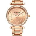 Женские наручные часы Stuhrling 3905.5 из коллекции Aria сочетают в себе элегантный дизайн и функциональность. Модель обладает круглым корпусом, изготовленным из стали с розовым PVD-покрытиемPVDУльтратонкое покрытие наносится в технике вакуумного напыления, сочетает в себе нитрид титана особой прочности со слоем золота или оксида хрома. Несёт в себе декоративную или защитную функцию., что обеспечивает прочность и устойчивость к внешним воздействиям . Браслет из того же материала на раскладной застёжкеРаскладная застёжкаТакой тип застёжки используется только на браслетах из металла. Она никогда не раскрывается полностью, происходит разделение на 2 и более частей. Раскладывающая застёжка снизит вероятность потери часов к минимуму., гарантирующей комфортное ношение . Розовый циферблат выполнен по технологии Sunray (солнечные лучи), что придает ему особый блеск и стиль . Циферблат украшен накладными метками в виде штрихов и двух римских цифр, а также корпус и браслет дополнены камнями, подчеркивающими изысканность модели . Для защиты используется стекло KrysternaKrysternaKrysterna — инновационное стекло для наручных часов. Благодаря уникальной структуре, Krysterna объединяет ключевые преимущества двух материалов: твердость сапфира, защищающую от царапин, и гибкость минерального стекла, обеспечивающую устойчивость к деформациям. Такая комбинация делает его идеальным решением для часов, подверженных экстремальным нагрузкам, сохраняя при этом оптическую прозрачность., изготавливаемое из материалов высшей категории, обеспечивающее повышенную устойчивость к царапинам . Часы работают на кварцевом механизме, что гарантирует точное время без необходимости подзаводки . Водонепроницаемость часов составляет 30WR, что позволяет использовать их в повседневной жизни, включая контакт с водой, например, при мытье рук, но не рекомендуется для плавания или дайвинга.