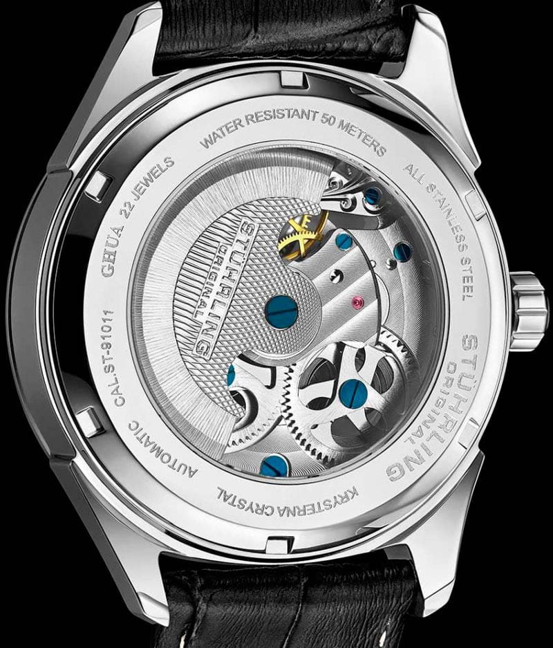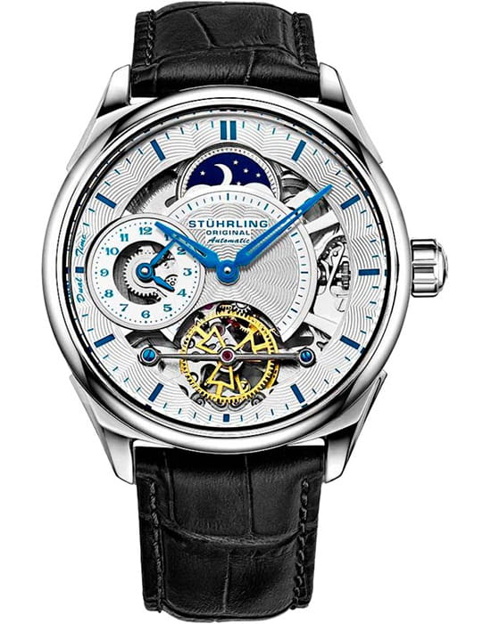 Stuhrling 943A.01 — эффектные мужские часы с открытым механическим сердцем, воплощающие искусство часового мастерства. Полностью скелетонизированный циферблат демонстрирует работу механизма, подчёркивая эстетику точности и движения. Корпус из нержавеющей стали гармонирует с ремнём из натуральной кожи, придавая модели классическую солидность. Металлизированные стрелки и метки обеспечивают читаемость, а прочное стекло KrysternaKrysternaKrysterna — инновационное стекло для наручных часов. Благодаря уникальной структуре, Krysterna объединяет ключевые преимущества двух материалов: твердость сапфира, защищающую от царапин, и гибкость минерального стекла, обеспечивающую устойчивость к деформациям. Такая комбинация делает его идеальным решением для часов, подверженных экстремальным нагрузкам, сохраняя при этом оптическую прозрачность. надёжно защищает конструкцию от повреждений. Stuhrling — это сочетание прозрачной механики, изысканного дизайна и утончённого стиля для ценителей настоящей инженерной красоты.