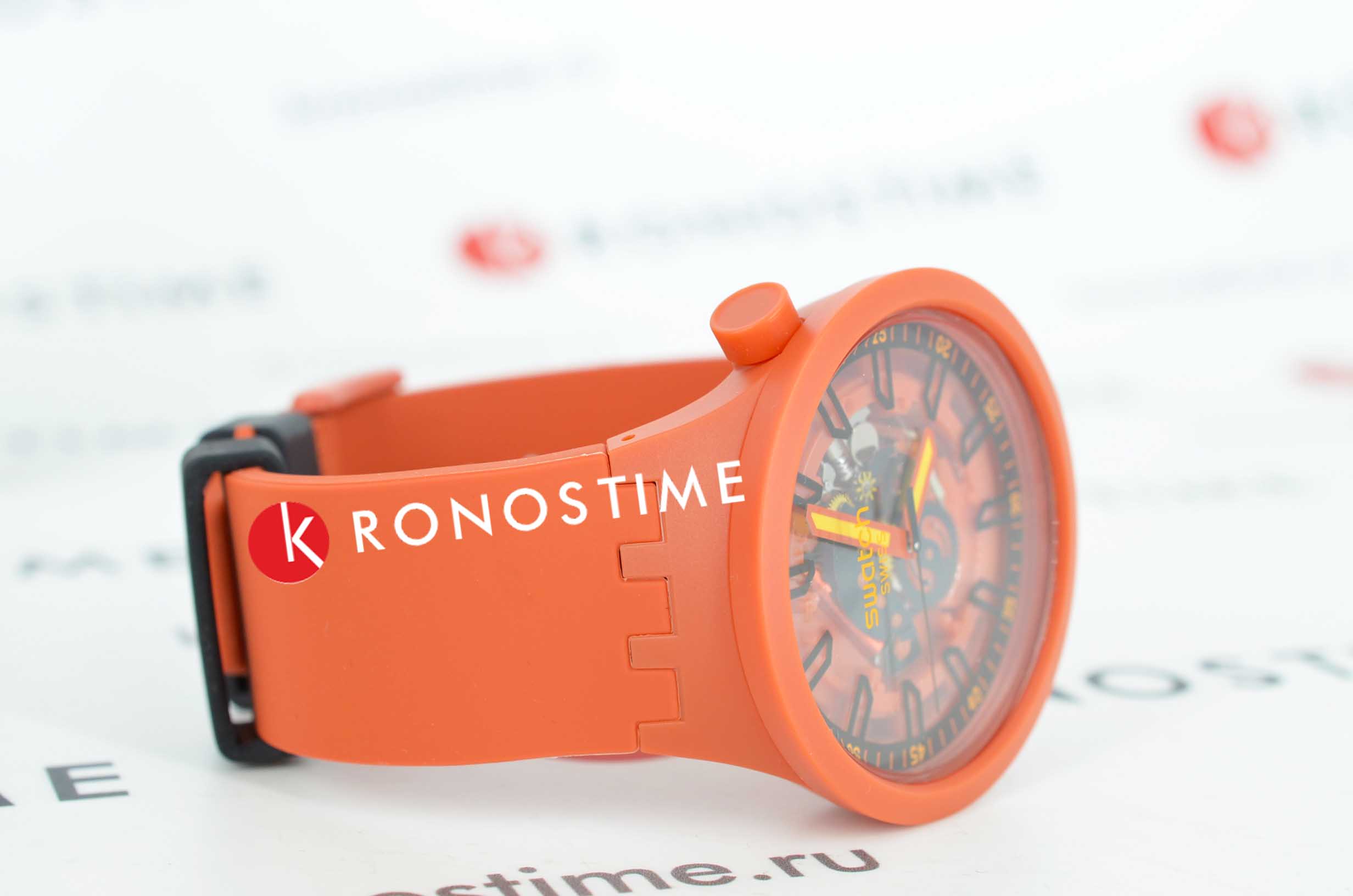Часы Swatch SB01R100 — это стильный и современный аксессуар для тех, кто ценит лёгкость и комфорт. Часы идеально подойдут как для мужчин, так и для женщин. Корпус этих крупных часов выполнен из прочного матового пластика красного цвета, а ремешок — из силикона. На часовую, минутную стрелки нанесено люминесцентное покрытиеЛюминесцентное покрытиеПозволяет считывать показания времени в темноте. Производители наносят на стрелки, часовые индексы, безель или поверхность циферблата светонакопительный состав, дающий холодное свечение., которое светится в темноте, создавая необычное изображение. Водозащита 30 метров делает часы практичными для повседневного использования. Эти часы подойдут для повседневного ношения и станут ярким акцентом в вашем наряде.