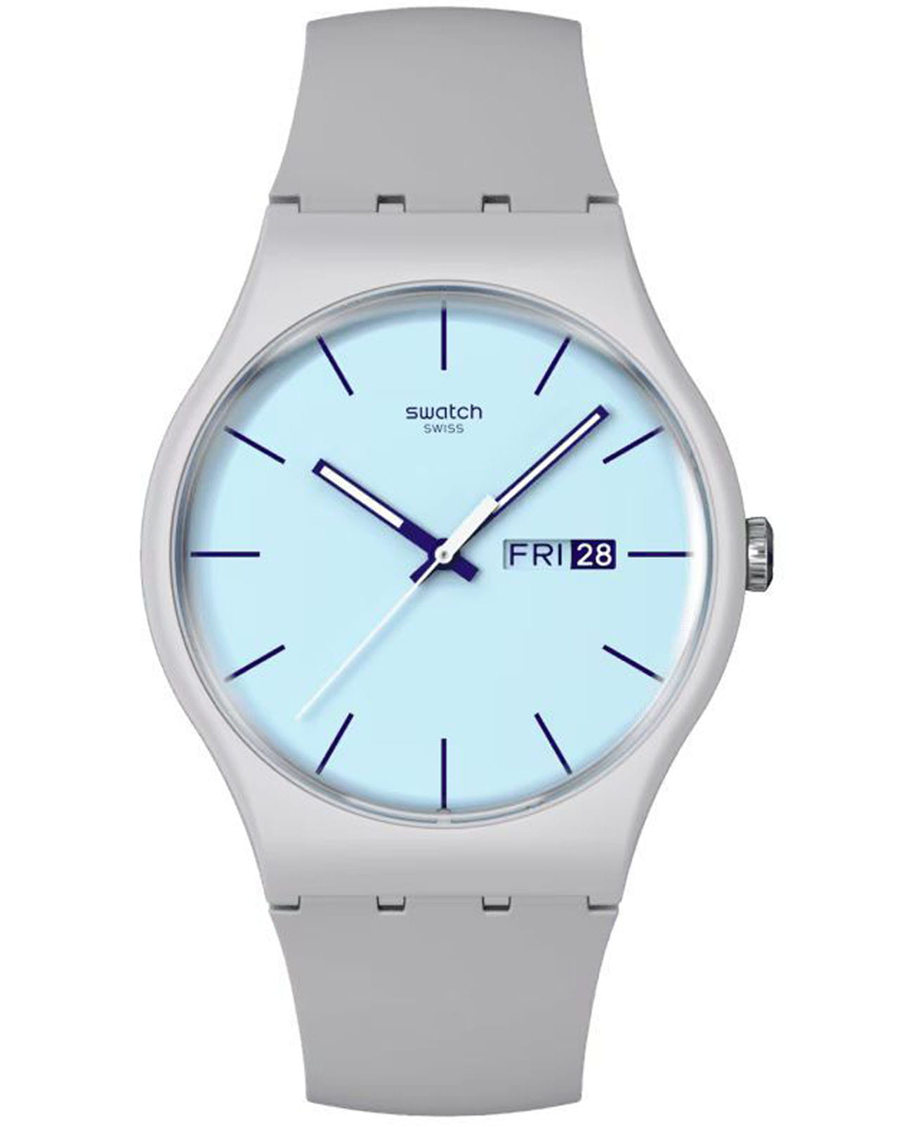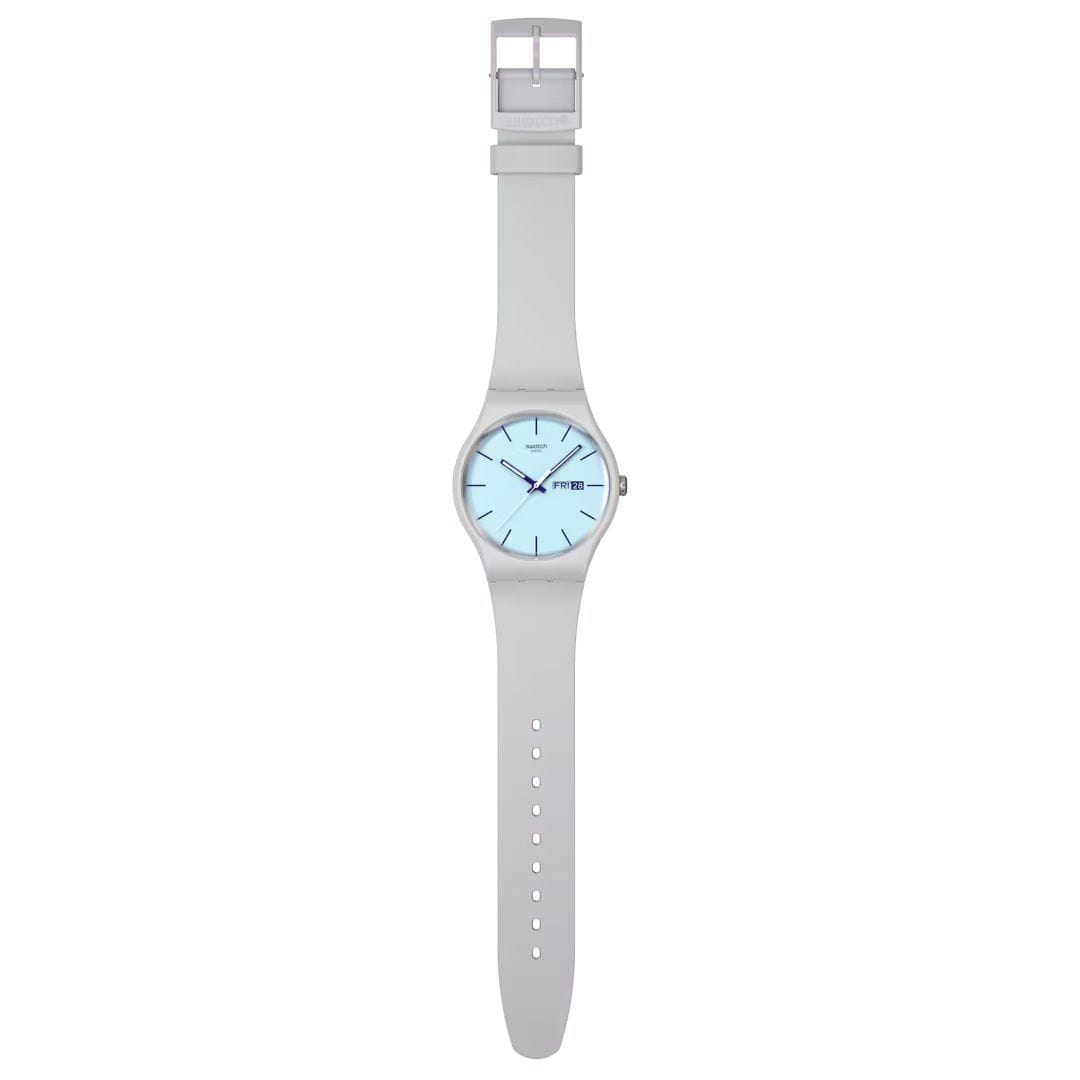 Часы Swatch SO29M702 —  стильный и надежный аксессуар. Циферблат этого часов имеет светло-голубой цвет с темно-фиолетовыми напечатанными индексами и окном даты и дня на 3 часах. Темно-фиолетовые стрелки с люминесцентным покрытиемЛюминесцентное покрытиеПозволяет считывать показания времени в темноте. Производители наносят на стрелки, часовые индексы, безель или поверхность циферблата светонакопительный состав, дающий холодное свечение. светятся в темноте, циферблат покрыт стеклом из биоматериала. Матовый светло-серый корпус из биоматериала с соответствующим ремешком, петлей и пряжкой завершает часы. Ремешок из силикона на стандартной застёжке. Внутри часов установлен надежный кварцевый механизм, который обеспечивает точность хода. Эти часы водонепроницаемы до 30 метров, что позволяет не беспокоиться о случайных брызгах или дождевых каплях. Swatch SO29M702 — это идеальный выбор для тех, кто ценит сочетание стиля, комфорта и функциональности в одном аксессуаре.