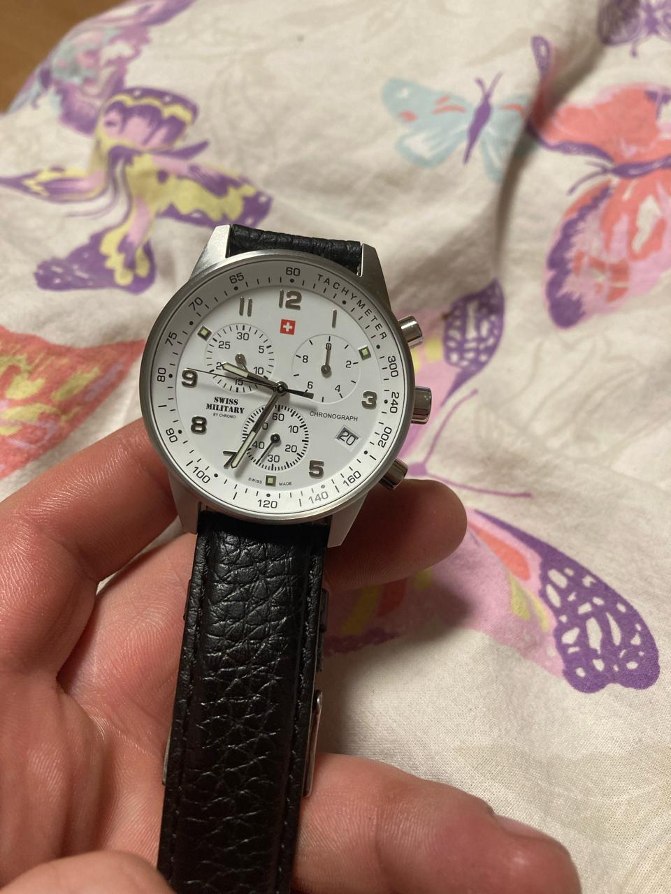Стильные швейцарские наручные часы-хронографХронографФункция позволяет измерять отрезки времени с особой точностью: часы, минуты, секунды. Верным признаком хронографа является наличие на циферблате 3 дополнительных окошек-счётчиков. Swiss Military by Chrono SM34012.06 как нельзя лучше подойдут ценителям современных техно-решений . Вся корпусная часть, за исключением минерального стекла, состоит из инновационной нержавейки с особой PVD-покрытиеPVDУльтратонкое покрытие наносится в технике вакуумного напыления, сочетает в себе нитрид титана особой прочности со слоем золота или оксида хрома. Несёт в себе декоративную или защитную функцию.. Она делает стекло наручных часов Свисс Милитари еще прочнее и позволяет держать уровень водозащиты. Функциональность часов дополняют хронограф и тахометрическая шкала.Калибр: ETA G10.211. Ремешок с раскладывающейся застежкой. Стекло минеральное стеклоМинеральное стеклоМинеральное стекло представляет собой искусственно выращенный минерал кварца. Такое стекло отличается особой устойчивостью к повреждениям и царапинам. Уступает по некоторым качествам сапфировому стеклу. с сапфировым покрытием.