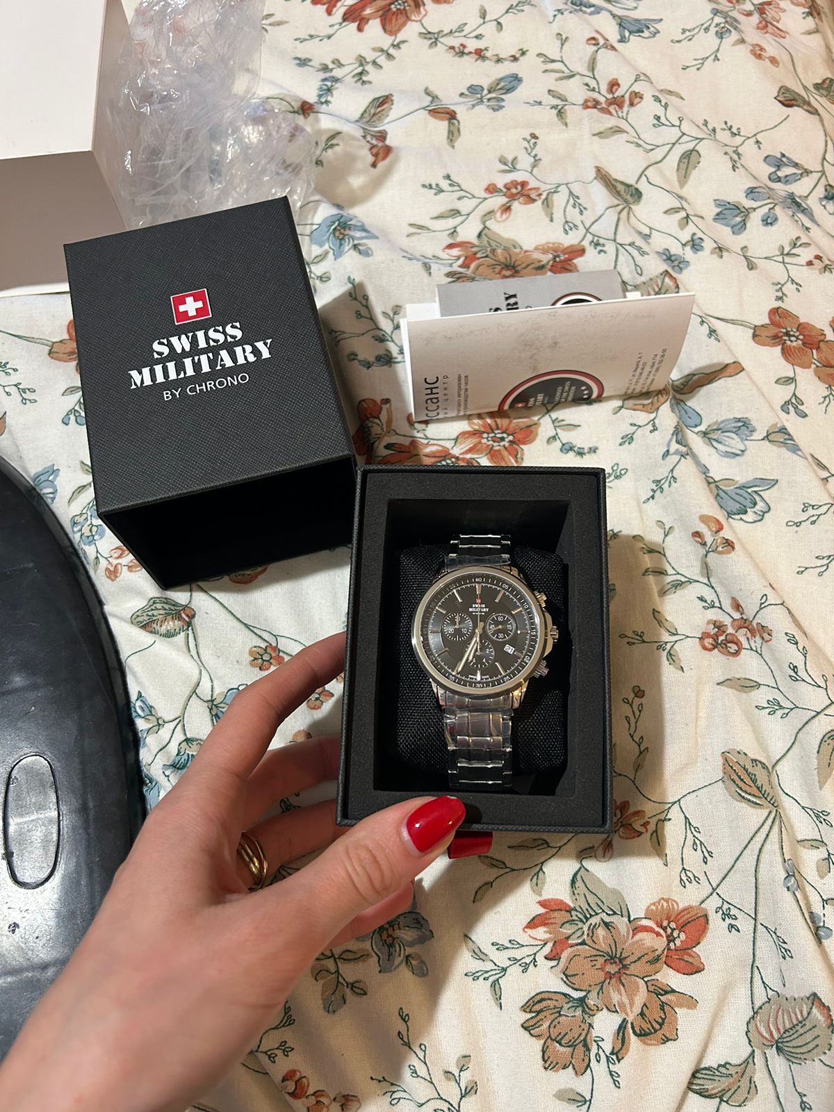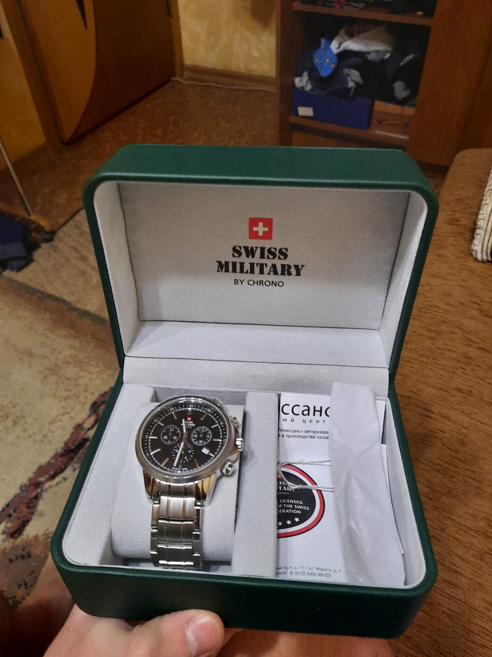 Стильные швейцарские наручные часы-хронографХронографФункция позволяет измерять отрезки времени с особой точностью: часы, минуты, секунды. Верным признаком хронографа является наличие на циферблате 3 дополнительных окошек-счётчиков. Swiss Military by Chrono SM34052.01 как нельзя лучше подойдут ценителям современных техно-решений. Вся корпусная часть, за исключением сапфирового стеклаСапфировое стеклоПрочный и надёжный материал из кристалла сапфира синтетического происхождения, характеризующийся особой твёрдостью и устойчивостью к царапинам и повреждениям., состоит из инновационной нержавейки. Функциональность часов дополняет тахометрическая шкала. Заводная головка с защитой. Браслет с раскладной застёжкойРаскладная застёжкаТакой тип застёжки используется только на браслетах из металла. Она никогда не раскрывается полностью, происходит разделение на 2 и более частей. Раскладывающая застёжка снизит вероятность потери часов к минимуму..