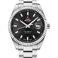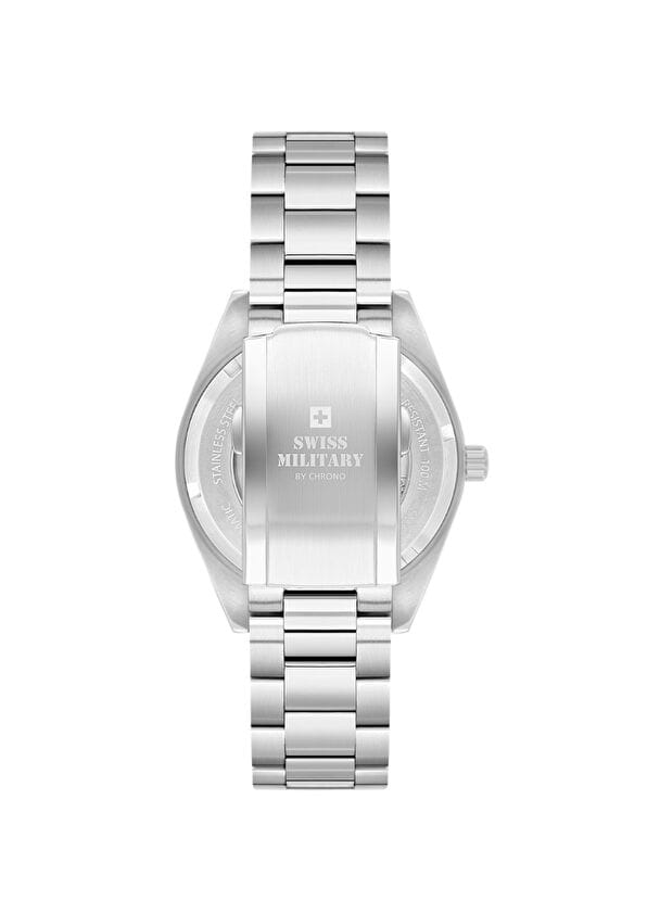 Мужские механические швейцарские часы с автоподзаводом Swiss Military by Chrono Automatic Collection SMA34110.01 — это элегантный мужской аксессуар, сочетающий швейцарское качество и классический дизайн. Корпус диаметром 40 мм и браслет выполнены из нержавеющей стали, придающим изделию изысканный вид. Сапфировое стеклоСапфировое стеклоПрочный и надёжный материал из кристалла сапфира синтетического происхождения, характеризующийся особой твёрдостью и устойчивостью к царапинам и повреждениям. устойчивое к появлению царапин, обладающее высокой прозрачностью. Стрелки и часовые метки покрыты люминесцентным составомЛюминесцентное покрытиеПозволяет считывать показания времени в темноте. Производители наносят на стрелки, часовые индексы, безель или поверхность циферблата светонакопительный состав, дающий холодное свечение., обеспечивая отличную читаемость в условиях низкой освещённости. Окошко даты находится в положении 3 часов. Браслет из нержавеющей стали с раскладной застёжкойРаскладная застёжкаТакой тип застёжки используется только на браслетах из металла. Она никогда не раскрывается полностью, происходит разделение на 2 и более частей. Раскладывающая застёжка снизит вероятность потери часов к минимуму. обеспечивает комфортное ношение и надёжную фиксацию на запястье. Водонепроницаемость до 10 ATM позволяет использовать часы при плавании и других водных активностях. Swiss Military — это идеальный выбор для мужчин, ценящих сочетание элегантности, функциональности и швейцарского качества.