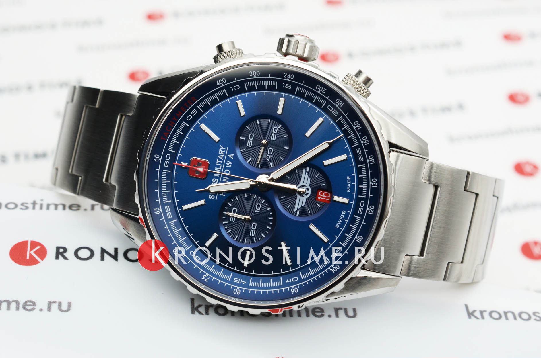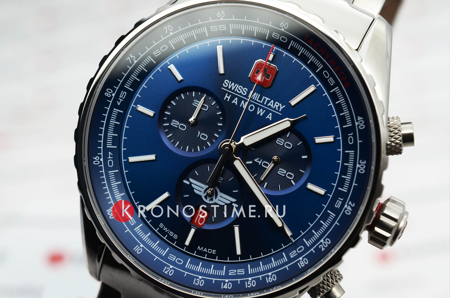 Мужские швейцарские часы-хронографХронографФункция позволяет измерять отрезки времени с особой точностью: часы, минуты, секунды. Верным признаком хронографа является наличие на циферблате 3 дополнительных окошек-счётчиков. Swiss Military Hanowa SMWGI0000304 с секундомеромСекундомерСекундоме́р — прибор, способный измерять интервалы времени с точностью до долей секунды., кварцевый механизм с высокой точностью. Сапфировое стеклоСапфировое стеклоПрочный и надёжный материал из кристалла сапфира синтетического происхождения, характеризующийся особой твёрдостью и устойчивостью к царапинам и повреждениям. устойчивое к появлению царапин, обладающее высокой прозрачностью. Класс водозащиты: 100 метров, позволит плавать, нырять и заниматься другими водными видами спорта. Корпус часов изготовлен из стали, серебристого цвета.