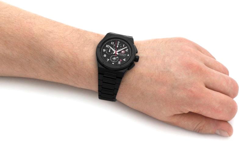 Мужские швейцарские часы-хронографХронографФункция позволяет измерять отрезки времени с особой точностью: часы, минуты, секунды. Верным признаком хронографа является наличие на циферблате 3 дополнительных окошек-счётчиков. Swiss Military Hanowa Aerograph SMWGI2102031, кварцевый механизм с высокой точностью. Сапфировое стеклоСапфировое стеклоПрочный и надёжный материал из кристалла сапфира синтетического происхождения, характеризующийся особой твёрдостью и устойчивостью к царапинам и повреждениям. устойчивое к появлению царапин, обладающее высокой прозрачностью. Класс водозащиты: 100 метров, позволит плавать, нырять и заниматься другими водными видами спорта. Корпус часов изготовлен из стали с IP-покрытиемIP-покрытиеМетод ионного напыления. Демонстрирует повышенную устойчивость к истиранию, окислению и химическим веществам. Под воздействием высокого давления и температуры около 1500°C молекулы металла надёжно соединяются с частицами корпуса часов..