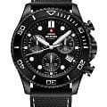 Часы Swiss Military SM34101.07 — это стильный мужской хронограф, который сочетает швейцарское качество и функциональность. Корпус диаметром 46 мм выполнен из нержавеющей стали с чёрным PVD-покрытиемPVDУльтратонкое покрытие наносится в технике вакуумного напыления, сочетает в себе нитрид титана особой прочности со слоем золота или оксида хрома. Несёт в себе декоративную или защитную функцию., что придаёт часам современный и прочный вид. Чёрный циферблат с люминесцентными стрелкамиЛюминесцентное покрытиеПозволяет считывать показания времени в темноте. Производители наносят на стрелки, часовые индексы, безель или поверхность циферблата светонакопительный состав, дающий холодное свечение. и метками обеспечивает превосходную читаемость даже в условиях низкой освещённости. Циферблат защищён сапфировым стекломСапфировое стеклоПрочный и надёжный материал из кристалла сапфира синтетического происхождения, характеризующийся особой твёрдостью и устойчивостью к царапинам и повреждениям., устойчивым к царапинам.