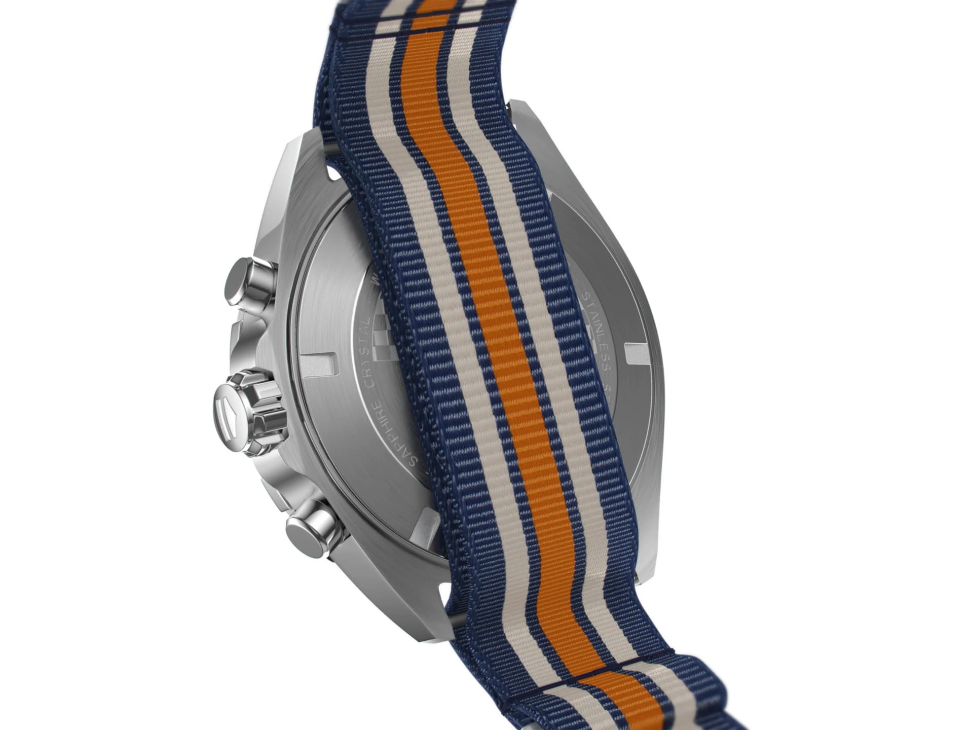 43-мм спортивный хронограф с синим циферблатом, синим безелем с тахиметрической шкалой из алюминия с микроструйной обработкой и классической конфигурацией счетчиков 3-6-9. Актуальный ремешок NATO такого же оттенка синего с центральной оранжевой и двумя тонкими серыми полосками. TAG Heuer Formula 1 CAZ1014.FC8196, кварцевый механизм с высокой точностью. Сапфировое стекло устойчивое к появлению царапин, обладающее высокой прозрачностью. Класс водозащиты: 200 метров, позволит плавать, нырять и заниматься другими водными видами спорта. Корпус часов изготовлен из стали, серебристого цвета.
