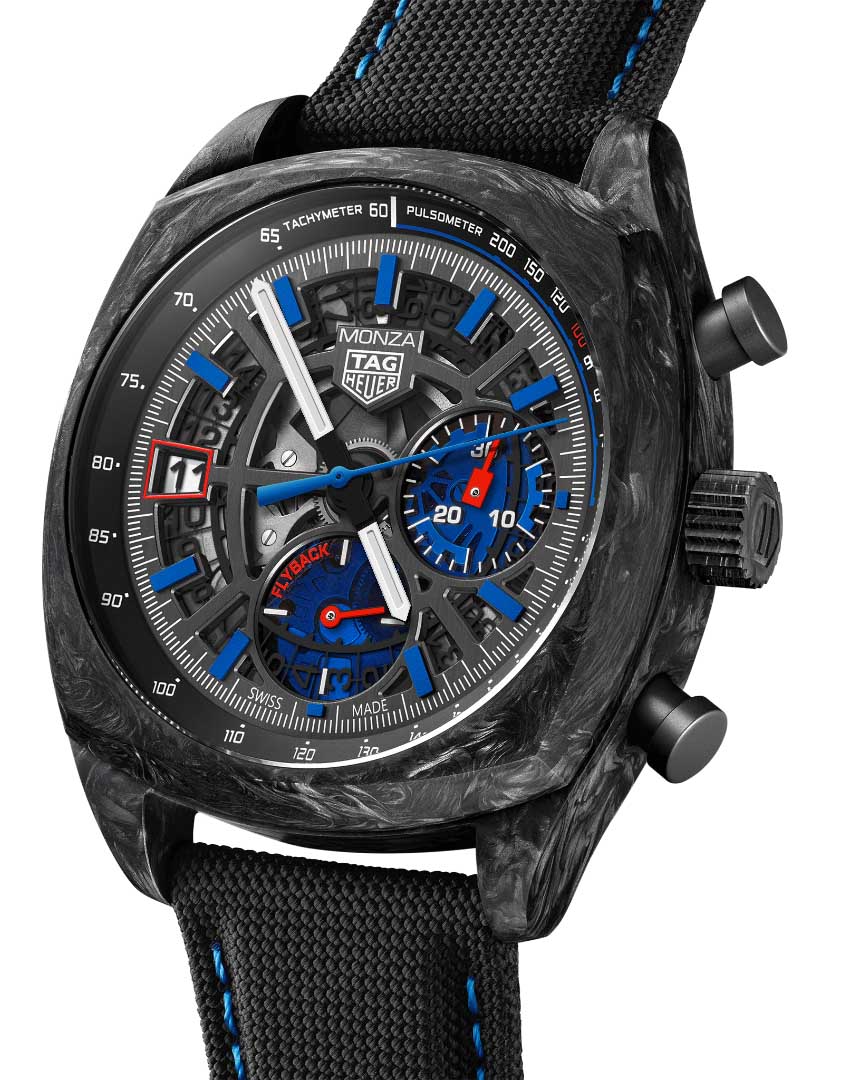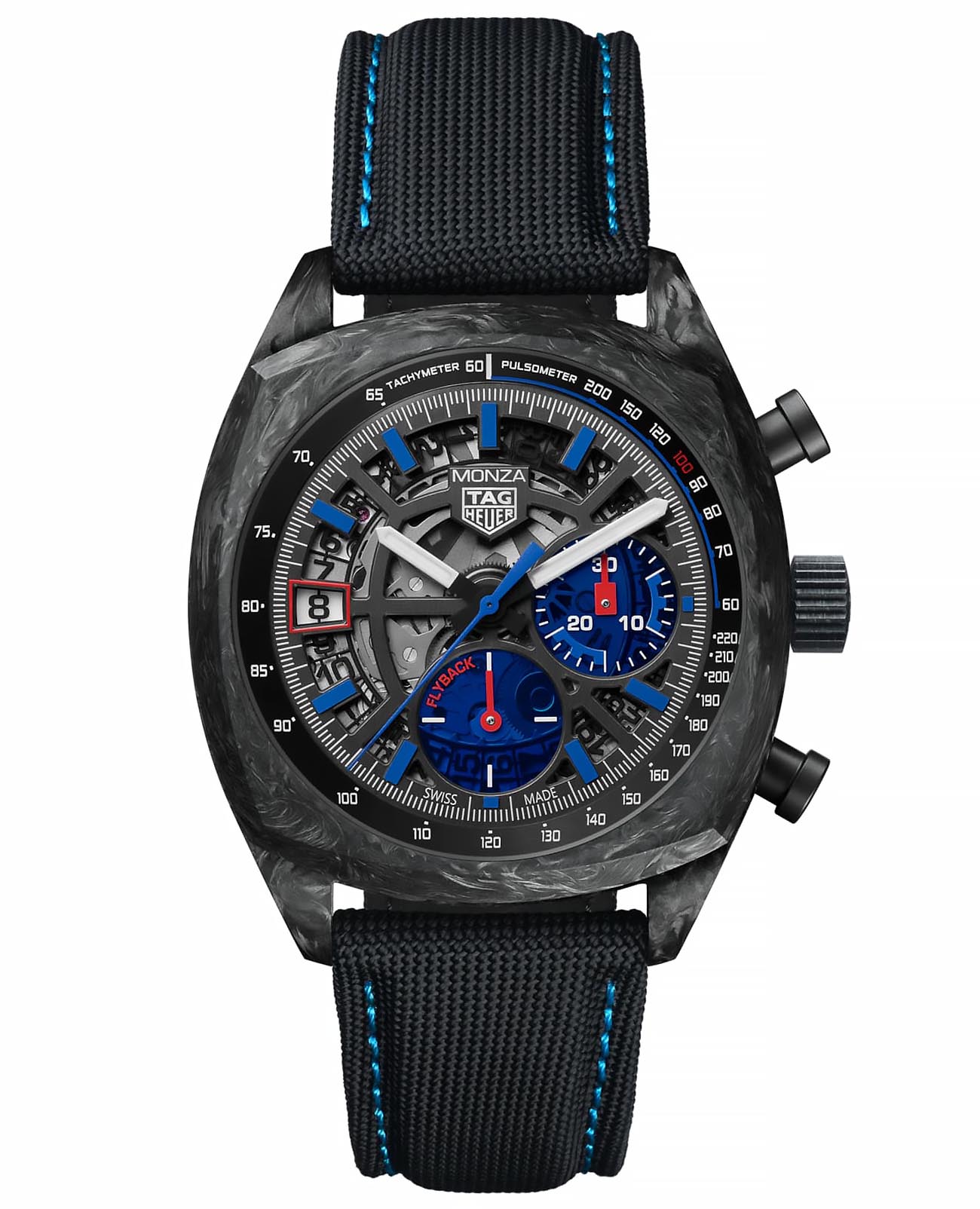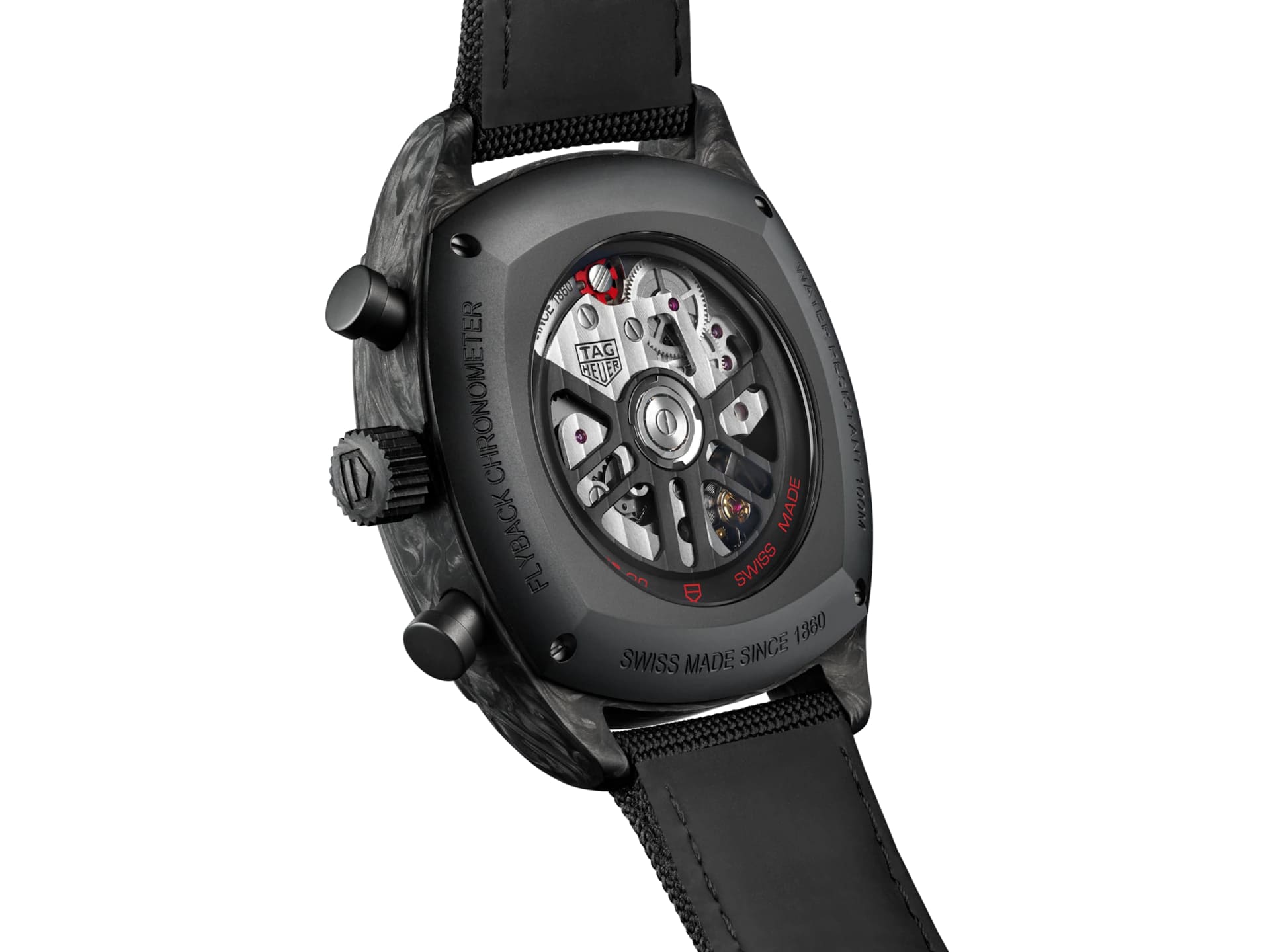 Monza возвращается в качестве современной дани уважения неразрывной связи между TAG Heuer и соревновательным автоспортом: это яркое карбоновое исполнение с экстремально спортивным дизайном. 42-миллиметровый корпус, изготовленный из сверхлегкого и прочного карбона, оснащен мануфактурным механизмом Calibre Heuer 02 Flyback - хронографХронографФункция позволяет измерять отрезки времени с особой точностью: часы, минуты, секунды. Верным признаком хронографа является наличие на циферблате 3 дополнительных окошек-счётчиков. с сертификатом COSC. Заявление часового дела.
