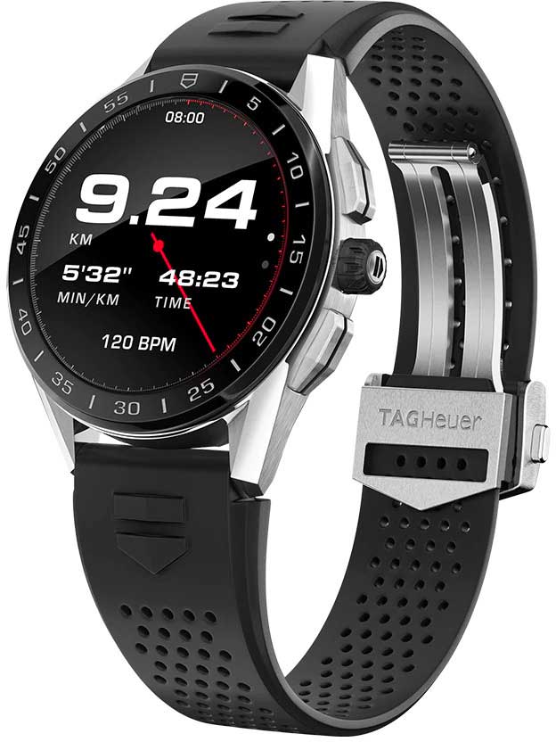 Новое поколение смарт-часов от TAG Heuer - это образец мастерства бренда, воплощающего в себе передовые технологии двадцать первого века. Эти часы – идеальный выбор для ценителей часового искусства и приверженцев активного образа жизни. Connected. Унисекс. Смарт-часы работают на базе четырехъядерного процессора Qualcomm® Snapdragon™ Wear 3100 и оснащены операционной системой Wear OS от Google. Совместимы с ОС Android 6.0+ (исключая версию Go) и iOS 10.0+. Встроенная система бесконтактной оплаты NFC (Google Pay). Микрофон. Голосовой помощник Google Assistant и Google Translate. Возможность установка приложений из Google Play. Возможность управления функциями телефона как через сенсорный дисплей, так и через функциональные кнопки и заводную головку. Подключение к интернету через Wi-Fi или с помощью интернета мобильного телефона. Синхронизация со смартфоном через Bluetooth. Поддержка спортивных онлайн-сообществ. Совместимость с приложением TAG Heuer Sports. Настраиваемые экраны: скелетонизированный циферблат мануфактурного механизма Heuer 02, цифровой механизм Carrera Heuer 01, анимация Orbital на основе уникальной нейросетевой модели, а также дисплей, вдохновленный фирменной спиралью баланса из углеродного композита на основе гексагональных нанотрубок. Настраиваемая подсветка (яркость/режим). Цветной сенсорный дисплей на органических светодиодах (OLED) размером 1,39'' и разрешением 454х454 пикселей (326 ppi). Второй часовой пояс. SPLIT-хронограф. Сервисы навигации GPS, GLONASS, BeiDou и QZSS. Пульсометр, компас, акселерометр, гироскоп, секундомер, таймер и будильник. Мониторинг количества израсходованных калорий. Вибро-оповещение. Перезаряжаемый аккумулятор 430мАч, которого хватает на сутки, включая часовую тренировку. Время полной подзарядки 1,5 часа. Керамический безель. Круглый корпус. Задняя крышка корпуса с винтовым креплением. Каучуковый ремешок с системой быстрой замены. В комплект входят магнитное зарядное устройство аккумулятора и специальный дорожный чехол.
