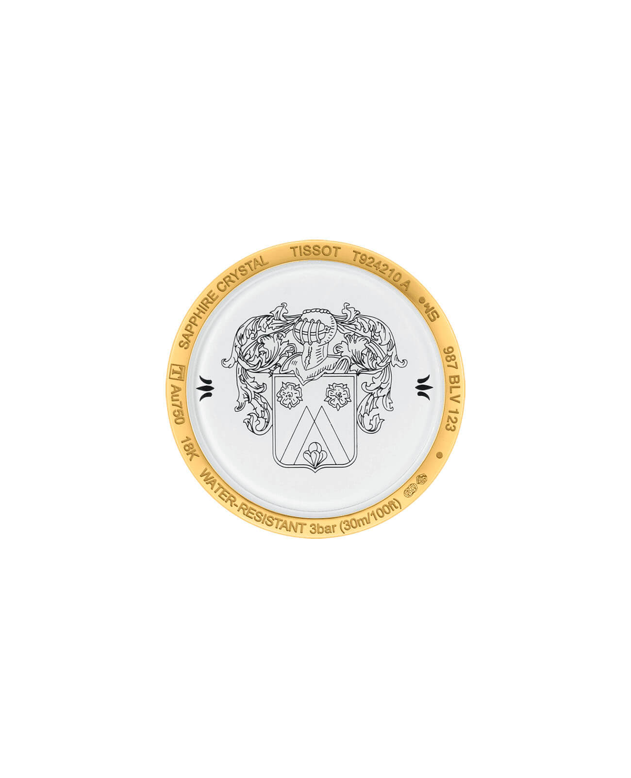 Изысканная модель премиальной категории отличается роскошным корпусом, для изготовления которого выбрали благородное 18-каратное жёлтое золото18-каратное золотоОбозначение по каратной системе пробирования, оно показывает, сколько драгоценного металла содержится в изделии. 18 карат - в составе 75% чистого золота, соответствует 750 пробе.