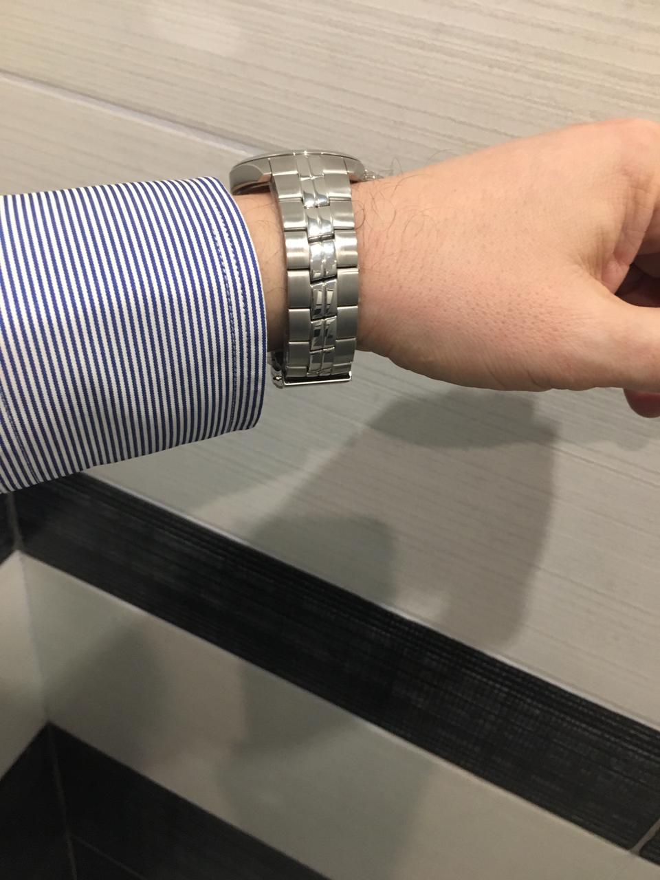 Номер заказа 24565. Однозначно рекомендую к покупке эту модель! Расскажу как выбирал. До них больше 20 лет носил, пока не встали, японские Ориент с автоподзаводом. От старости на них даже хром начал слазить, но они шли! Но у них несколько раз приходилось регулировать точность хода то в «+», то в «-», особенность механики. «На выход» есть позолоченные кварцевые Тиссо Баллад. Точность хода кварца устраивает, регулировать не нужно. Было решено на замену первым приобрести кварц на каждый день, Швейцария, скорее Тиссо. Тоже у меня проверенный временем бренд. Учитывать пришлось несколько факторов: 1. любое покрытие от ежедневной носки неизбежно будет стираться; 2. хронографом никто не пользуется по назначению, он нужен только для красоты, усложняет механизм, более дорогой в ремонте; 3. я офисный работник. В результате выбор был сделан в пользу этой модели! Красивые, стильные, классика, без хронографа, на нержавейке, кварц. Пойдёт и под пиджак в офисе и спортивную одежду. Размер-то, что нужно-не маленькие и не огромные! Время и дата считываются легко! (На хронографе опять же читается хуже). После Ориента мне не хватает дня недели на циферблате, но не критично-привыкну! Тяжелее, чем титан, но тоже некритично, переплачивать смысла нет. Цвет циферблата «белый» мне показался простым, «чёрный» - скучным. Мне больше понравился темно-синий. Хотя, конечно, на вкус и цвет... По качеству говорить рано-только купил! Остаётся только надеяться на Швейцарское качество и долговечность. Хотя повсеместно, к сожалению, сейчас идёт удешевление и упрощение конструкций. А мне сравнить есть с чем! Итог - на данном этапе рекомендую к покупке.