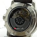 Дизайнеры выбрали для модели суженный безельБезельВнешний ободок, закрепляющий стекло. В спортивных часах так называется поворотное кольцо с делениями на циферблате, выполняет роль таймера – замеряет отрезки времени на шкале. Неподвижный безель – элемент декора. Однонаправленно вращающийся безель на дайверских часах позволяет фиксировать моменты погружения и выныривания на поверхность., такая особенность зрительно увеличивает циферблат и ускоряет процесс считывания показателей. Массивный стальной корпус сочетается с ремешком из натуральной коровьей кожи, поверхность имитирует рисунок кожи крокодила. Метки и стрелки имеют люминесцентное покрытиеЛюминесцентное покрытиеПозволяет считывать показания времени в темноте. Производители наносят на стрелки, часовые индексы, безель или поверхность циферблата светонакопительный состав, дающий холодное свечение., что позволяет использовать часы в темноте. Швейцарский калибр ETA C01.211 с запасом хода 45 часов. Сапфировое стекло устойчиво к возникновению царапин. Водонепроницаемость до 20 бар. . Секундомер, апертура даты. Габариты: 43 x 44 x 16,3 мм.