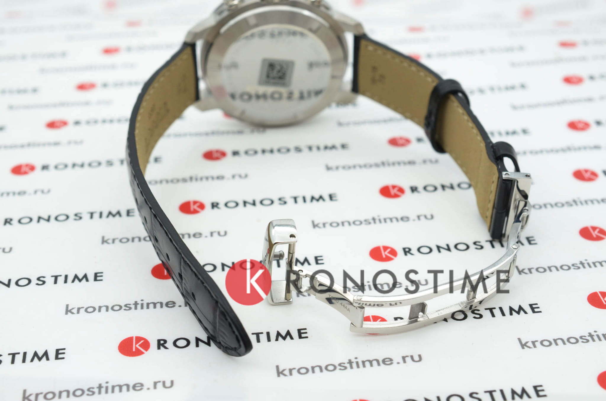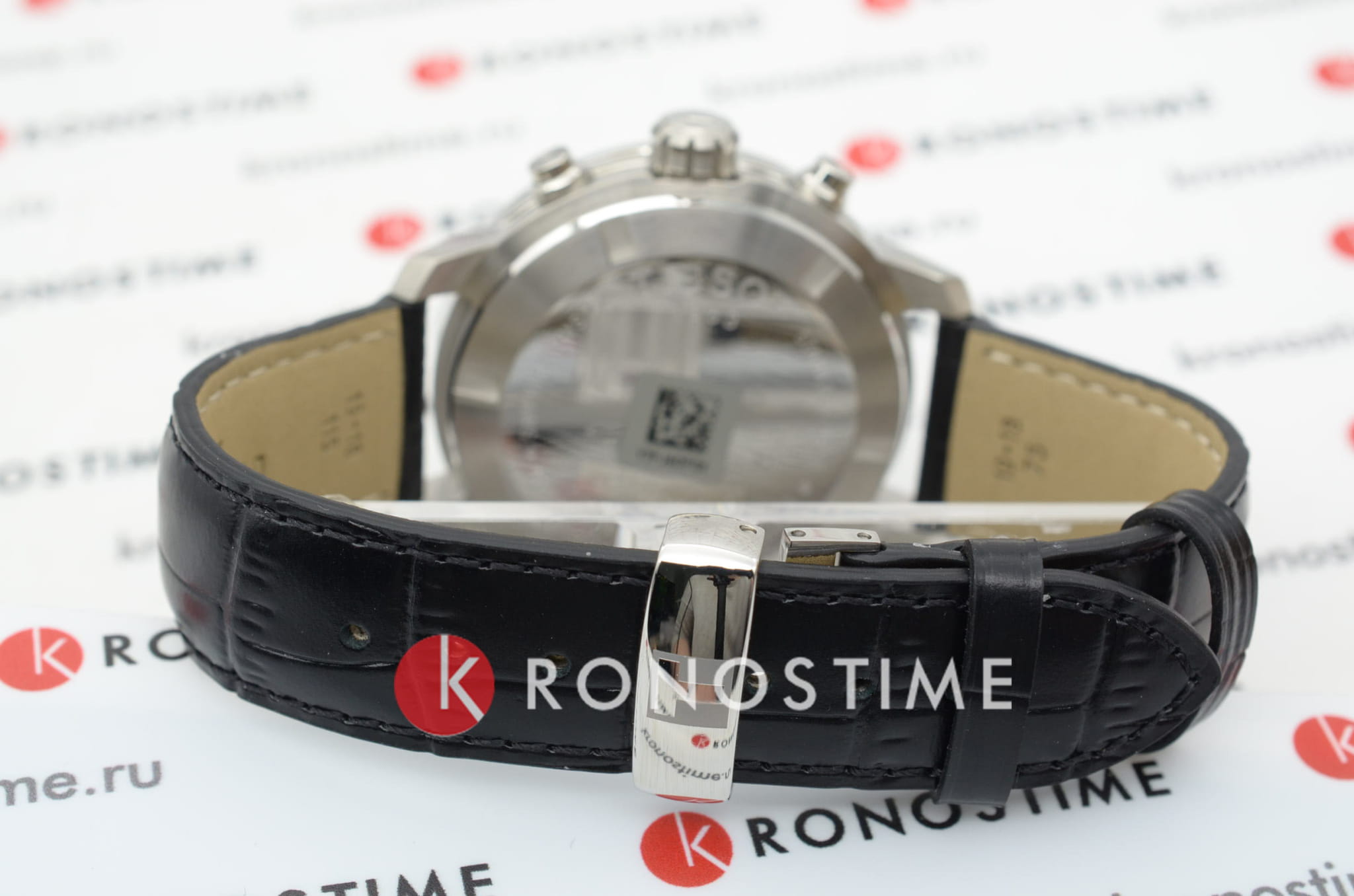 Секундная стрелка и стрелки счётчиков хронографаХронографФункция позволяет измерять отрезки времени с особой точностью: часы, минуты, секунды. Верным признаком хронографа является наличие на циферблате 3 дополнительных окошек-счётчиков. выполнены в жёлтом цвете, такая особенность привносит в общую картину эксклюзивность и спортивные элементы. Стильный аксессуар будет гармонично смотреться как с брючным строгим костюмом, так и с образом с джинсами. Часы комплектуются ремешком из натуральной кожи с рисунком под кожу крокодила.Кварцевый калибр ETA G10.211. Прочное сапфировое стекло. Возможности: хронограф, секундомер, тахиметрТахиметрРазмеченная шкала, располагается на ободке или безеле часов. Тахиметр позволяет рассчитать скорость на определённом участке пути, расстояние измеряется в километрах или милях., отображение текущей даты. Габариты: 41 x 42 x 12 мм.