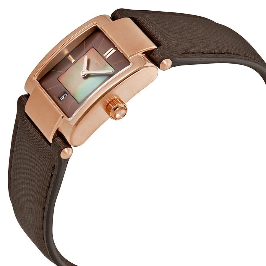 TISSOT T0903103738100 T-Trend T02 Quartz - женские кварцевые наручные часы Корпус этих часов небольшого размера (23 мм) и выполнен из нержавеющей стали L316 с PVD-покрытием цвета розового золота Модель TISSOT T0903103738100 T-Trend T02 Quartz имеет устойчивое к царапинам сапфировое стекло, ремешок из натуральной кожи коричневого цвета, коричневый циферблат Калибр механизма: ETA F03111 Класс водозащиты: 50 м / 5 АТМ (избыточная защита от брызг, допускается кратковременное нахождение в воде) Дополнительные функции и особенности: отображение числа Полная заводская комплектация TISSOT: оригинальные часы, фирменная коробка, инструкция, сервисная книжка, роман о часовой фабрике, миникаталог, замшевый фирменный чехол черного цвета для хранения и/или переноски часов, кассовый и товарный чеки Международная гарантия 2 года Производство и сборка: Швейцария
