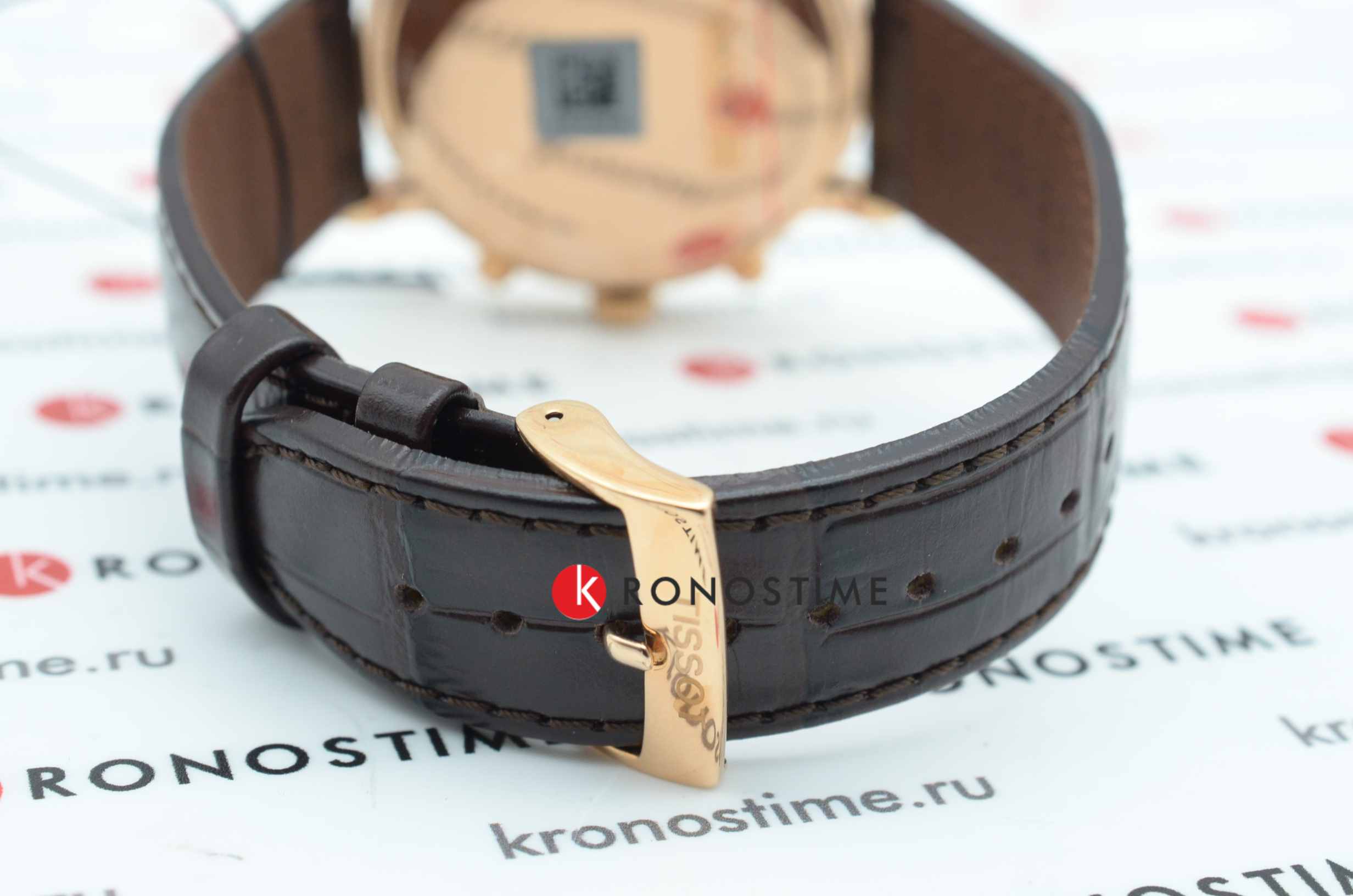 Модель не отличается богатым декором или броскими деталями, её особенность заключается в наличии полезного функционала и минималистичном строгом дизайне. Наручные часы привлекают золотистыми переливами корпуса с PVD-покрытиемPVDУльтратонкое покрытие наносится в технике вакуумного напыления, сочетает в себе нитрид титана особой прочности со слоем золота или оксида хрома. Несёт в себе декоративную или защитную функцию., циферблат было решено оставить в белом цвете. Они комплектуются высокоточным кварцевым механизмом ETA G10.212. Сохранение водонепроницаемости при давлении до 50 бар. Ремешок из натуральной кожи. Надёжное сапфировое стекло. ХронографХронографФункция позволяет измерять отрезки времени с особой точностью: часы, минуты, секунды. Верным признаком хронографа является наличие на циферблате 3 дополнительных окошек-счётчиков., секундомер, отображение даты. Габариты: 41 x 41 x 10,2 мм.