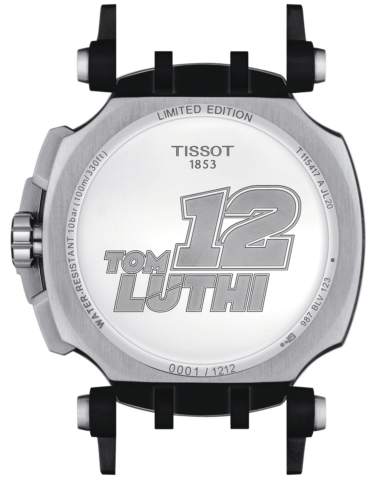 Швейцарские мужские часы Limited Edition из коллекции T-Race отличаются дерзким спортивным стилем, аксессуар, посвящённый мотогонщику Томасу Люти, выпускается в ограниченном количестве - 1212 экземпляров.