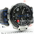 Задняя крышка имеет гравировку - номер "12", под которым выступает знаменитый спортсмен. Броская модель с оригинальным исполнением циферблата станет отличительной деталью вашего образа, динамичности придают синие элементы. Всё напоминает о гоночных мотоциклах. Необычный безельБезельВнешний ободок, закрепляющий стекло. В спортивных часах так называется поворотное кольцо с делениями на циферблате, выполняет роль таймера – замеряет отрезки времени на шкале. Неподвижный безель – элемент декора. Однонаправленно вращающийся безель на дайверских часах позволяет фиксировать моменты погружения и выныривания на поверхность. имитирует тормозной диск, счётчики хронографаХронографФункция позволяет измерять отрезки времени с особой точностью: часы, минуты, секунды. Верным признаком хронографа является наличие на циферблате 3 дополнительных окошек-счётчиков. сделаны под приборную панель, узор ремешка навевает мысли о протекторе шины. Высокую точность хода обеспечивает кварцевый калибр ETA G10.212. Сапфировое стекло с антибликовым покрытием. Чёрное PVD-покрытиеPVDУльтратонкое покрытие наносится в технике вакуумного напыления, сочетает в себе нитрид титана особой прочности со слоем золота или оксида хрома. Несёт в себе декоративную или защитную функцию.. Люминесцентная подсветкаЛюминесцентное покрытиеПозволяет считывать показания времени в темноте. Производители наносят на стрелки, часовые индексы, безель или поверхность циферблата светонакопительный состав, дающий холодное свечение.. Водонепроницаемость 100 метров. Секундомер, тахиметрТахиметрРазмеченная шкала, располагается на ободке или безеле часов. Тахиметр позволяет рассчитать скорость на определённом участке пути, расстояние измеряется в километрах или милях., отображение даты. Эксклюзивная упаковка в виде шлема. Габариты: 47,6 x 43 x 12,3 мм.