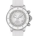 Tissot Seastar 1000 Quartz Chronograph T120.217.17.011.00 — компактный спортивный хронограф с дайверскими характеристиками. Корпус диаметром 38 мм изготовлен из нержавеющей стали и дополнен бело-серым градиентным циферблатом с перламутровым отливом. Безель — поворотный, с серым алюминиевым кольцом и 60-минутной шкалой. Циферблат защищён сапфировым стекломСапфировое стеклоПрочный и надёжный материал из кристалла сапфира синтетического происхождения, характеризующийся особой твёрдостью и устойчивостью к царапинам и повреждениям. с антибликовым покрытиемАнтибликовое покрытиеСлой оксида металла в 0,13-0,3 микрон, благодаря которому стекло часов не бликует и не отражает свет. Антибликовое покрытие уменьшает отражение света в 10 раз, обеспечивая отличную читаемость показателей циферблата.. Часовые метки и стрелки с люминесцентным покрытиемЛюминесцентное покрытиеПозволяет считывать показания времени в темноте. Производители наносят на стрелки, часовые индексы, безель или поверхность циферблата светонакопительный состав, дающий холодное свечение. обеспечивают читаемость даже в условиях плохого освещения. На циферблате расположены три счётчика: 1/10 секунды, 60 секунд и 30 минут. Также присутствует окно даты между «4» и «5 часами». Внутри установлен швейцарский кварцевый хронографХронографФункция позволяет измерять отрезки времени с особой точностью: часы, минуты, секунды. Верным признаком хронографа является наличие на циферблате 3 дополнительных окошек-счётчиков., обеспечивающий высокую точность и удобство использования. Модель укомплектована силиконовым белым ремешком с классической застёжкой. Водонепроницаемость до 300 метров делает Seastar 1000 идеальным спутником для плавания и водных видов спорта. Tissot Seastar T120.217.17.011.00 — утончённый дайверский хронограф с профессиональной функциональностью и стильным внешним видом.