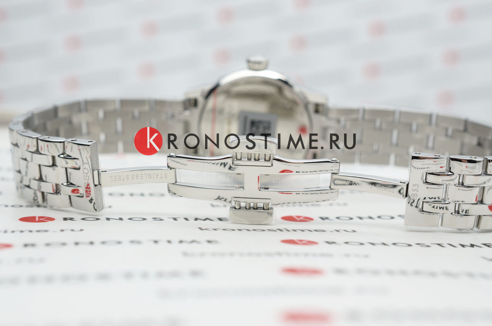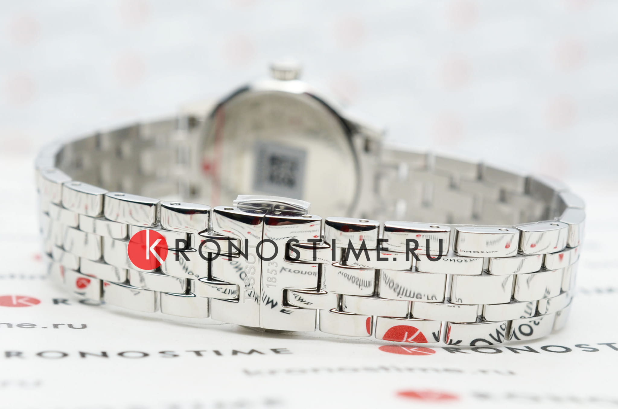 Модель представлена в минималистичном исполнении. Точность хода швейцарского кварцевого механизма ETA F04.115 составляет +/- 20 секунд в месяц. Сапфировое стеклоСапфировое стеклоПрочный и надёжный материал из кристалла сапфира синтетического происхождения, характеризующийся особой твёрдостью и устойчивостью к царапинам и повреждениям. устойчиво к появлению царапин. Корпус и браслет изготовлены из нержавеющей стали 316L. Часы сохраняют водостойкость при давлении 5 бар. Застёжка «бабочка» с кнопкамиЗастёжка "бабочка"Такой вид застёжки дополняется предохранителями, помогающими избежать случайного раскрытия браслета. Обладают изящным исполнением. никогда не расстегнётся случайным образом. Функции: календарь, EOLEOLПредставляет собой систему, уведомляющую владельца часов о необходимости замены элемента питания. За 2 недели до полного разряда батарейки секундная стрелка перестаёт ходить чётко и начинает перепрыгивать на 3-4 деления..