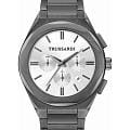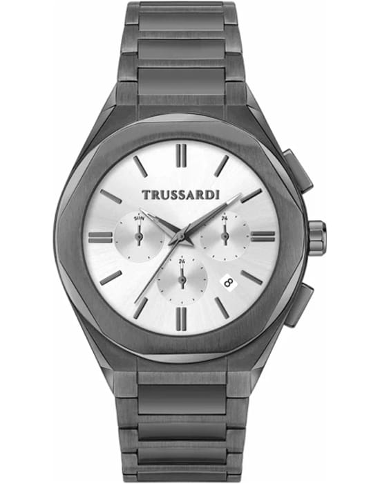 Итальянские мужские часы Trussardi Brink R2453156003 - это стильный мужской аксессуар, который сочетает элегантный дизайн и практичность. Корпус выполнен из нержавеющей стали с IP-покрытиемIP-покрытиеМетод ионного напыления. Демонстрирует повышенную устойчивость к истиранию, окислению и химическим веществам. Под воздействием высокого давления и температуры около 1500°C молекулы металла надёжно соединяются с частицами корпуса часов., что обеспечивает долговечность и утончённый внешний вид. Надежное минеральное стеклоМинеральное стеклоМинеральное стекло представляет собой искусственно выращенный минерал кварца. Такое стекло отличается особой устойчивостью к повреждениям и царапинам. Уступает по некоторым качествам сапфировому стеклу. защищает циферблат от царапин и обеспечивает долговечность. Модель оснащена кварцевым механизмом, обеспечивающим высокую точность хода. Браслет из нержавеющей стали с IP-покрытиемIP-покрытиеМетод ионного напыления. Демонстрирует повышенную устойчивость к истиранию, окислению и химическим веществам. Под воздействием высокого давления и температуры около 1500°C молекулы металла надёжно соединяются с частицами корпуса часов.  с раскладной застёжкойРаскладная застёжкаТакой тип застёжки используется только на браслетах из металла. Она никогда не раскрывается полностью, происходит разделение на 2 и более частей. Раскладывающая застёжка снизит вероятность потери часов к минимуму. обеспечивает комфортное ношение. Водозащита 50 метров позволит защитить корпус от случайных брызг или капель дождя. Вынесенный циферблат с 24-х часовым указателем времени, второй часовой пояс в 24-х часовом формате, а также вынесенный циферблат с указателем дня недели. Окошко даты в положении между 4 и 5 часами. Стрелки оснащены люминесцентным покрытиемЛюминесцентное покрытиеПозволяет считывать показания времени в темноте. Производители наносят на стрелки, часовые индексы, безель или поверхность циферблата светонакопительный состав, дающий холодное свечение., обеспечивающим отличную видимость даже при слабом освещении. Эта модель – отличный выбор для тех, кто ищет сочетание стиля, качества и функциональности. Часы станут не только полезным аксессуаром, но и выразительным элементом вашего имиджа.