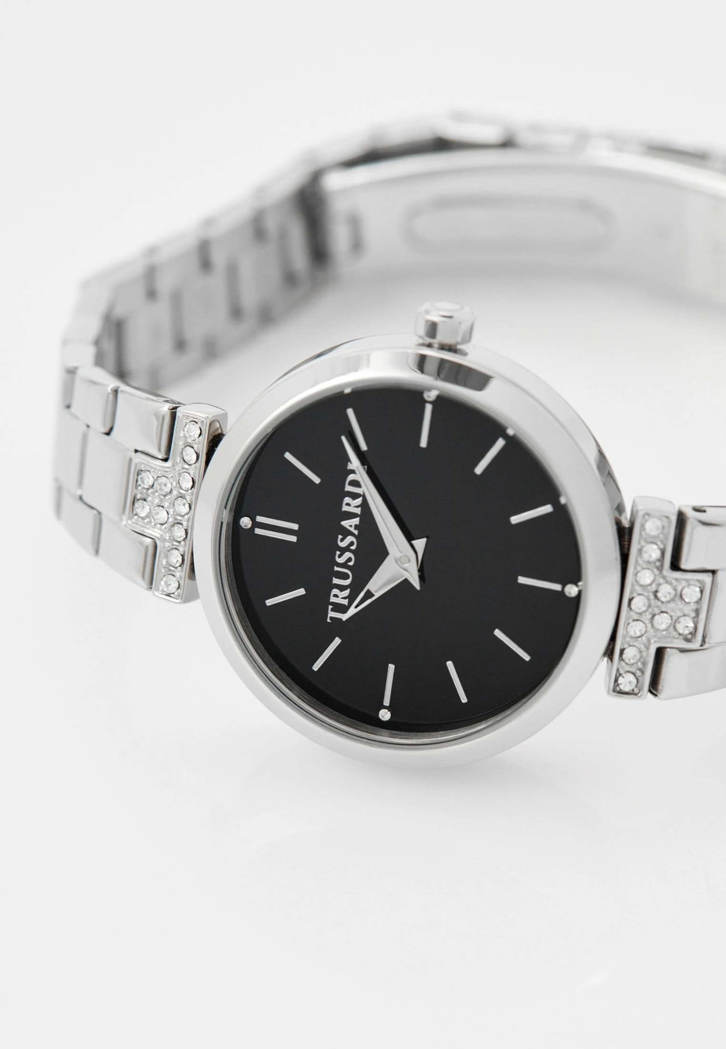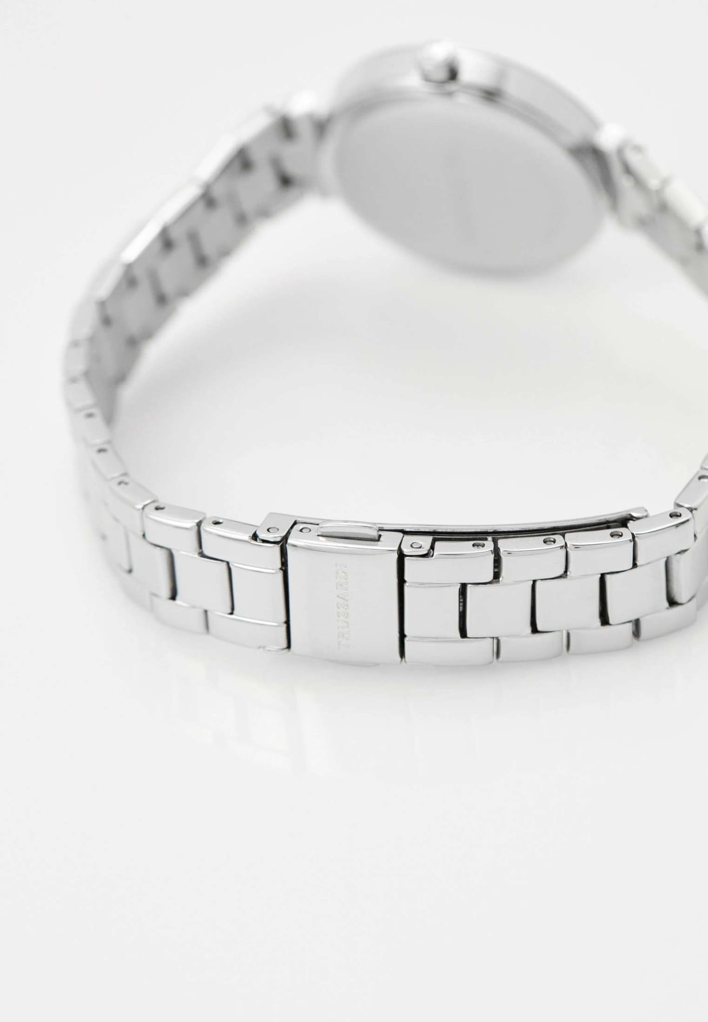 Итальянские женские часы Trussardi Loud R2453164503 - это стильный женский аксессуар, который сочетает элегантный дизайн и практичность. Корпус выполнен из нержавеющей стали, что обеспечивает долговечность и утончённый внешний вид. Надежное минеральное стеклоМинеральное стеклоМинеральное стекло представляет собой искусственно выращенный минерал кварца. Такое стекло отличается особой устойчивостью к повреждениям и царапинам. Уступает по некоторым качествам сапфировому стеклу. защищает циферблат от царапин и обеспечивает долговечность. Модель оснащена кварцевым механизмом, обеспечивающим высокую точность хода. Браслет с кристаллами из нержавеющей стали на раскладной застёжкеРаскладная застёжкаТакой тип застёжки используется только на браслетах из металла. Она никогда не раскрывается полностью, происходит разделение на 2 и более частей. Раскладывающая застёжка снизит вероятность потери часов к минимуму. обеспечивает комфортное ношение. Стрелки оснащены люминесцентным покрытиемЛюминесцентное покрытиеПозволяет считывать показания времени в темноте. Производители наносят на стрелки, часовые индексы, безель или поверхность циферблата светонакопительный состав, дающий холодное свечение., обеспечивающим отличную видимость даже при слабом освещении. Водозащита 50 метров позволит защитить корпус от случайных брызг или капель дождя. Эта модель – отличный выбор для тех, кто ищет сочетание стиля, качества и функциональности. Часы станут не только полезным аксессуаром, но и выразительным элементом вашего имиджа.