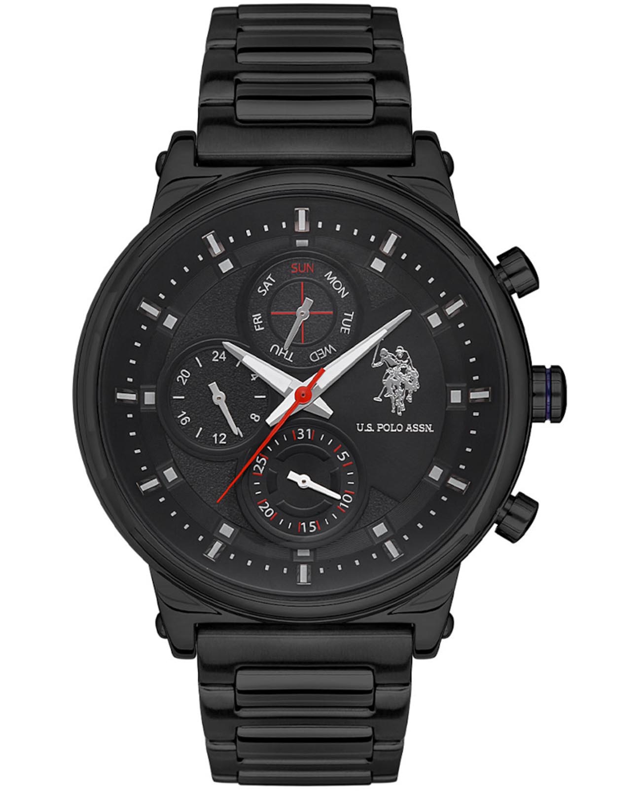 Мужские часы часы U.S. Polo Assn. Crossing USPA1008-12, кварцевый механизм с высокой точностью. Минеральное стеклоМинеральное стеклоМинеральное стекло представляет собой искусственно выращенный минерал кварца. Такое стекло отличается особой устойчивостью к повреждениям и царапинам. Уступает по некоторым качествам сапфировому стеклу. устойчивое к появлению царапин, обладающее высокой прозрачностью. Центральные часовая, минутная и секундная стрелки. Индикация даты и дня недели. 12/24х часовой формат времени. Корпус изготовлен из нержавеющей стали с IP-покрытиемIP-покрытиеМетод ионного напыления. Демонстрирует повышенную устойчивость к истиранию, окислению и химическим веществам. Под воздействием высокого давления и температуры около 1500°C молекулы металла надёжно соединяются с частицами корпуса часов.. На циферблате три дополнительных индикатора. Стрелки и метки с люминесцентным покрытиемЛюминесцентное покрытиеПозволяет считывать показания времени в темноте. Производители наносят на стрелки, часовые индексы, безель или поверхность циферблата светонакопительный состав, дающий холодное свечение.. Класс водозащиты: 50 метров, позволит защитить корпус от случайных брызг или капель дождя. Стальной браслет на раскладной застёжкеРаскладная застёжкаТакой тип застёжки используется только на браслетах из металла. Она никогда не раскрывается полностью, происходит разделение на 2 и более частей. Раскладывающая застёжка снизит вероятность потери часов к минимуму. с IP-покрытиемIP-покрытиеМетод ионного напыления. Демонстрирует повышенную устойчивость к истиранию, окислению и химическим веществам. Под воздействием высокого давления и температуры около 1500°C молекулы металла надёжно соединяются с частицами корпуса часов..