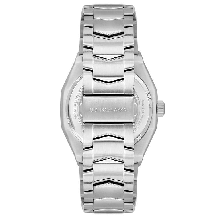 Мужские американские классические часы U.S. Polo Assn. Fundamental USPA1059-02 с кварцевым механизмом с высокой точностью. Минеральное стеклоМинеральное стеклоМинеральное стекло представляет собой искусственно выращенный минерал кварца. Такое стекло отличается особой устойчивостью к повреждениям и царапинам. Уступает по некоторым качествам сапфировому стеклу. устойчивое к появлению царапин, обладающее высокой прозрачностью. Серебристый изысканный корпус изготовлен из нержавеющей стали. Центральные часовая, минутная и секундная стрелки. Окошко даты находится в положении 3 часа. Класс водозащиты: 50 метров, позволит защитить корпус от случайных брызг или капель дождя. Стальной браслет на раскладной застёжкеРаскладная застёжкаТакой тип застёжки используется только на браслетах из металла. Она никогда не раскрывается полностью, происходит разделение на 2 и более частей. Раскладывающая застёжка снизит вероятность потери часов к минимуму. дополняет корпус. Модель подчёркивает индивидуальность владельца и идеально подходит как для повседневного, так и для делового образа.