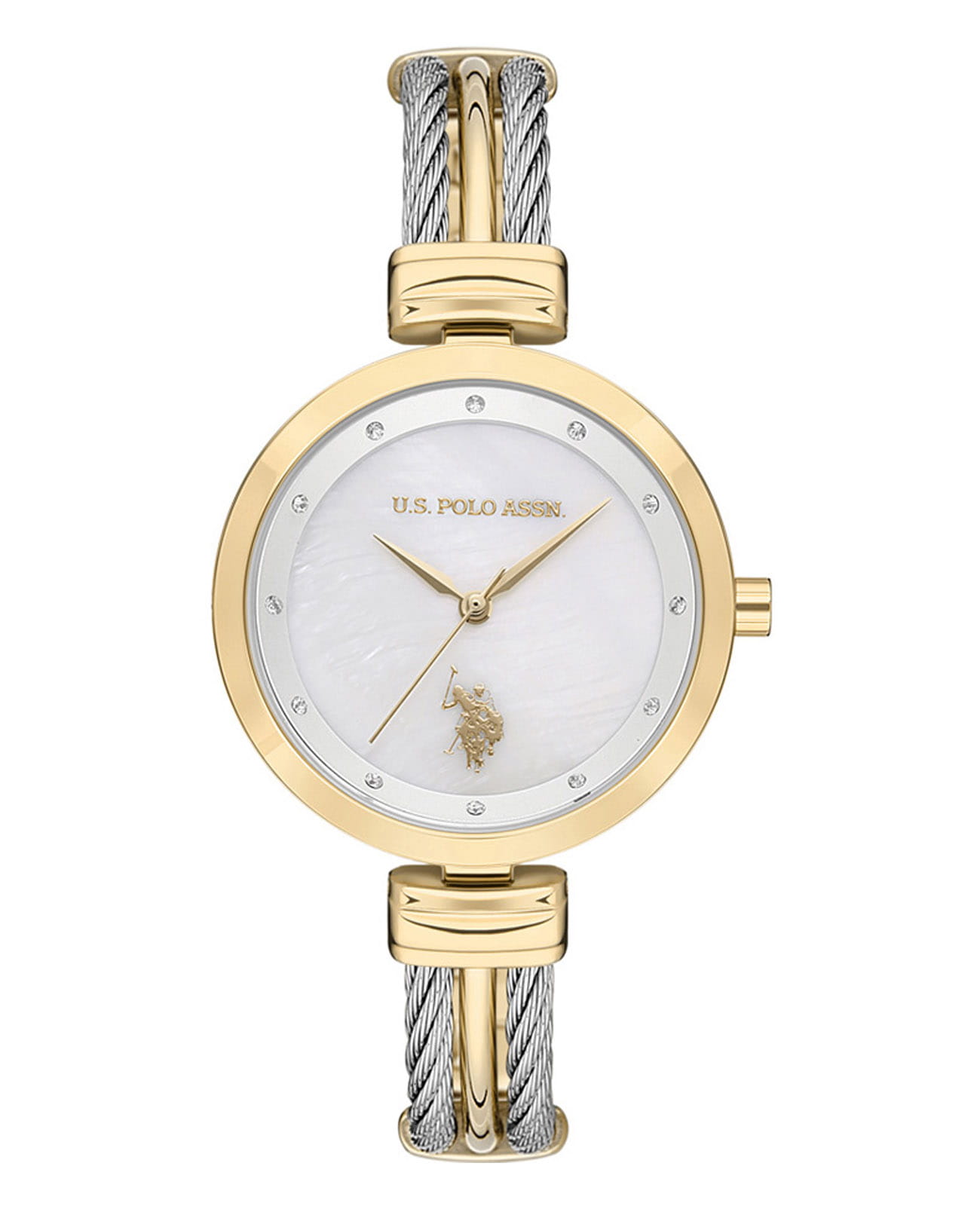 Женские часы U.S. Polo Assn Stile USPA2029-01, кварцевый механизм с высокой точностью. Минеральное стеклоМинеральное стеклоМинеральное стекло представляет собой искусственно выращенный минерал кварца. Такое стекло отличается особой устойчивостью к повреждениям и царапинам. Уступает по некоторым качествам сапфировому стеклу. устойчивое к появлению царапин, обладающее высокой прозрачностью. Корпус изготовлен из нержавеющей стали с IP-покрытиемIP-покрытиеМетод ионного напыления. Демонстрирует повышенную устойчивость к истиранию, окислению и химическим веществам. Под воздействием высокого давления и температуры около 1500°C молекулы металла надёжно соединяются с частицами корпуса часов.. Циферблат украшен кристаллами. Класс водозащиты: 50 метров, позволит защитить корпус от случайных брызг или капель дождя. Стальной браслет с частичным IP-покрытиемIP-покрытиеМетод ионного напыления. Демонстрирует повышенную устойчивость к истиранию, окислению и химическим веществам. Под воздействием высокого давления и температуры около 1500°C молекулы металла надёжно соединяются с частицами корпуса часов. на ювелирной застёжке.