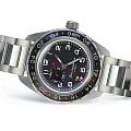 Мужские российские механические наручные часы Восток Командирские 02019А, механический механизм (автоматический калибр) с высокой точностью. Класс водозащиты: 200 метров, позволит плавать, нырять и заниматься другими водными видами спорта. Стрелки с люминесцентным покрытиемЛюминесцентное покрытиеПозволяет считывать показания времени в темноте. Производители наносят на стрелки, часовые индексы, безель или поверхность циферблата светонакопительный состав, дающий холодное свечение.. Вращающийся безельБезельВнешний ободок, закрепляющий стекло. В спортивных часах так называется поворотное кольцо с делениями на циферблате, выполняет роль таймера – замеряет отрезки времени на шкале. Неподвижный безель – элемент декора. Однонаправленно вращающийся безель на дайверских часах позволяет фиксировать моменты погружения и выныривания на поверхность. из нержавеющей стали с PVDPVDУльтратонкое покрытие наносится в технике вакуумного напыления, сочетает в себе нитрид титана особой прочности со слоем золота или оксида хрома. Несёт в себе декоративную или защитную функцию. покрытием. Дополнительная 24-часовая стрелка. Механизм калибра 24 мм с боковой секундной стрелкой. Автоподзавод с предохранительным устройством от перезаводки пружины. Частота: 19800 полуколебаний/час. Браслет с раскладной застёжкойРаскладная застёжкаТакой тип застёжки используется только на браслетах из металла. Она никогда не раскрывается полностью, происходит разделение на 2 и более частей. Раскладывающая застёжка снизит вероятность потери часов к минимуму..