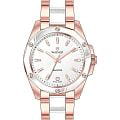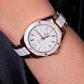 Женские кварцевые часы Wainer WA.18050-C сочетают в себе элегантный дизайн и высокое качество исполнения. Корпус выполнен из гипоаллергенной нержавеющей стали с PVD-покрытиемPVDУльтратонкое покрытие наносится в технике вакуумного напыления, сочетает в себе нитрид титана особой прочности со слоем золота или оксида хрома. Несёт в себе декоративную или защитную функцию., диаметром 34 мм и толщиной 8 мм, обеспечивает прочность и долговечность. Циферблат украшен фирменным логотипом Wainer в положении 12 часов. Метки в виде штрихов, циркон в положении 6 часов. Сапфировое стеклоСапфировое стеклоПрочный и надёжный материал из кристалла сапфира синтетического происхождения, характеризующийся особой твёрдостью и устойчивостью к царапинам и повреждениям. защищает дисплей от царапин и механических повреждений. Керамический безельБезельВнешний ободок, закрепляющий стекло. В спортивных часах так называется поворотное кольцо с делениями на циферблате, выполняет роль таймера – замеряет отрезки времени на шкале. Неподвижный безель – элемент декора. Однонаправленно вращающийся безель на дайверских часах позволяет фиксировать моменты погружения и выныривания на поверхность.. Стальной браслет с PVD-покрытиемPVDУльтратонкое покрытие наносится в технике вакуумного напыления, сочетает в себе нитрид титана особой прочности со слоем золота или оксида хрома. Несёт в себе декоративную или защитную функцию. и керамическими вставками на застёжке-бабочке с кнопкамиЗастёжка "бабочка"Такой вид застёжки дополняется предохранителями, помогающими избежать случайного раскрытия браслета. Обладают изящным исполнением. обеспечивает комфортное ношение на запястье. Водонепроницаемость до 50 метров позволит защитить корпус от случайных брызг или капель дождя. Рифленая заводная головка с защитой. Wainer — это стильный и надежный аксессуар для тех, кто ценит швейцарское качество и современные технологии.