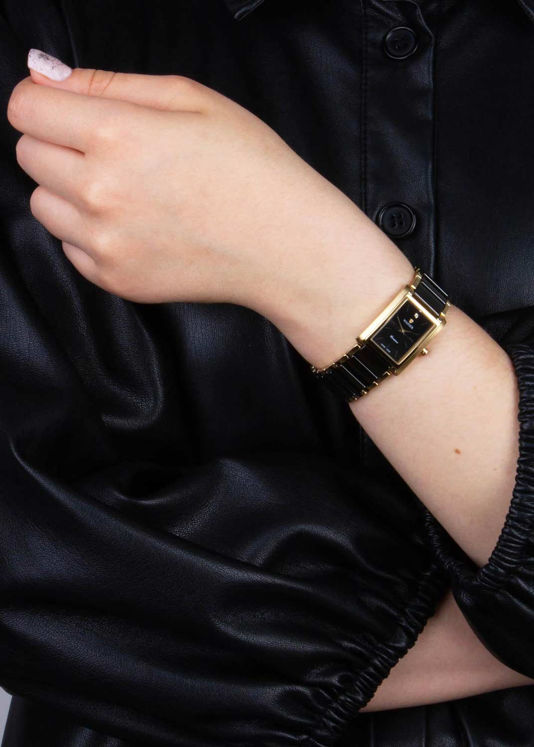 Швейцарские женские кварцевые часы Wainer WA.18060-H станут элегантным дополнением любого образа. Прямоугольный корпус из нержавеющей стали 316L размером 22х24.5 мм и толщиной 8 мм защищен прочным сапфировым стекломСапфировое стеклоПрочный и надёжный материал из кристалла сапфира синтетического происхождения, характеризующийся особой твёрдостью и устойчивостью к царапинам и повреждениям.. Циферблат с метками в виде штрихов украшен кристаллом в положении 12 часов, а заводная головка с фирменным логотипом добавляет модели особый шарм. Часы имеют класс водозащиты 30 метров, позволит защитить корпус от случайных брызг или капель дождя. Модель комплектуется стальным браслетом из нержавеющей стали 316L с керамическими вставками на раскладной застёжкеРаскладная застёжкаТакой тип застёжки используется только на браслетах из металла. Она никогда не раскрывается полностью, происходит разделение на 2 и более частей. Раскладывающая застёжка снизит вероятность потери часов к минимуму., длина браслета составляет 180 мм. Вес часов 88 грамм обеспечивает комфортное ношение в течение дня. Элегантный дизайн и надежное качество швейцарского производства делают эти часы превосходным выбором для современной женщины.