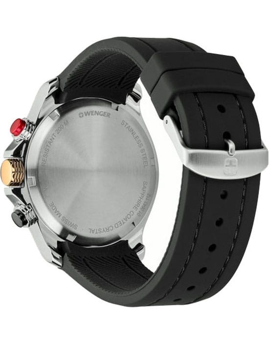 Мужские швейцарские часы с хронографом Wenger Seaforce 01.0643.112, кварцевый механизм с высокой точностью. Класс водозащиты: 200 метров, позволит плавать, нырять и заниматься другими водными видами спорта. Корпус часов изготовлен из стали, разноцветного цвета.